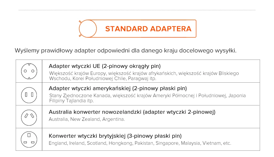 Tak, proszę zostawić notatkę przed złożeniem zamówienia, wyślemy odpowiedni adapter lub konwerter zgodnie z regionem odbiornika.