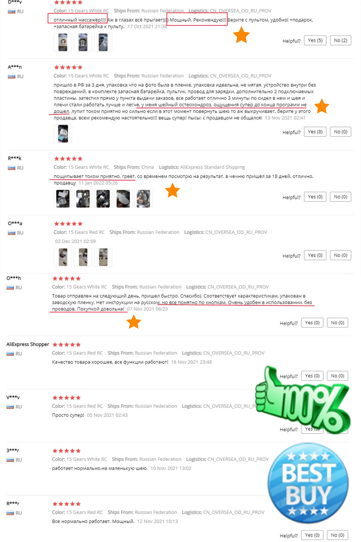 пришло в РФ за 3 дня, упаковка что на фото была в пленке, упаковка идеальна, не мятая. устройство внутри без повреждений, в комплекте запасная батарейка, пультик, провод для зарядки, дополнительно 2 подключаемых пластины. затестил прямо у пункта выдачи заказов, все работает отлично 3 минуты по сидел в нем и шея и плечи стали работать лучше и легче, у меня шейный остеохондроз, ощущения супер до конца программ не дошел. лупит током приятно но сильно если в этот момент повернуть шею то аж выкручивает. берите у этого продавца, всем рекомендую настоятельно!!! вещь супер! пысы: с продавцом не общался!