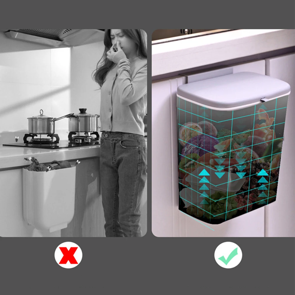 Kosz na śmieci może być zawieszony na drzwi kuchennych, drzwi do szafki, spiżarni, drzwi, lub gdziekolwiek indziej. Grubość drzwi powinna być mniejsza niż 0.95 cal (2.5cm), nie nadaje się do zawieszenia w szafie.