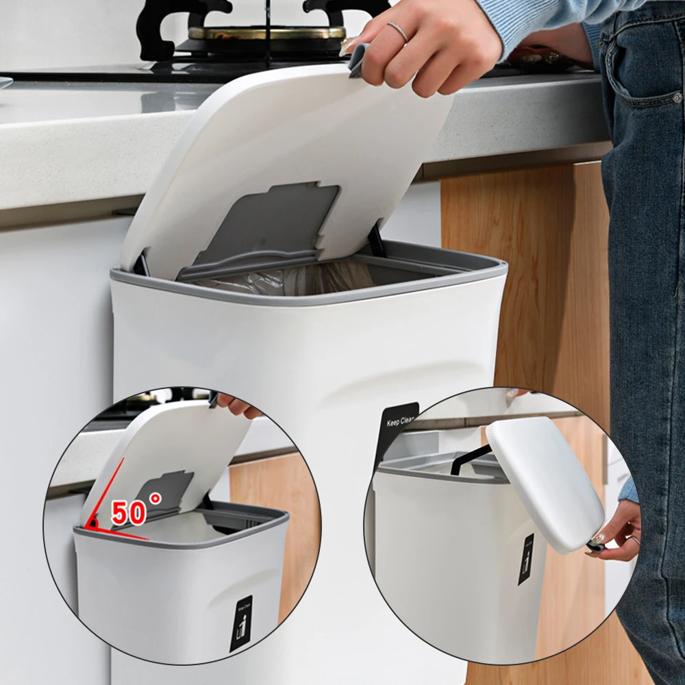-Jeśli chcesz, aby automatyczna pokrywa powróciła po upuszczeniu kosza, po prostu delikatnie popchnij pokrywkę, nie musisz jej całkowicie odsyłać, wróci do miejsca. Pokrywa jest nadal uszczelniona po automatyczny reset, który może skutecznie zapobiec zapach z ucieczki, a także dobry pies dowód kosz na śmieci.