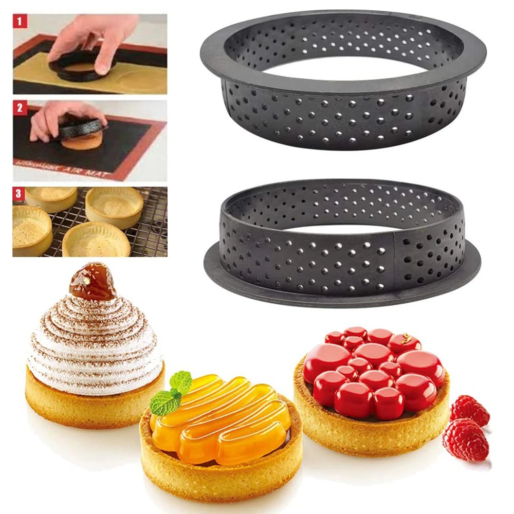 8 sztuk/zestaw Tarte pierścień perforowane plastikowe pierścienie tnące non-stick forma do Tart mus wykrawacz kółek DIY pieczenia zestaw