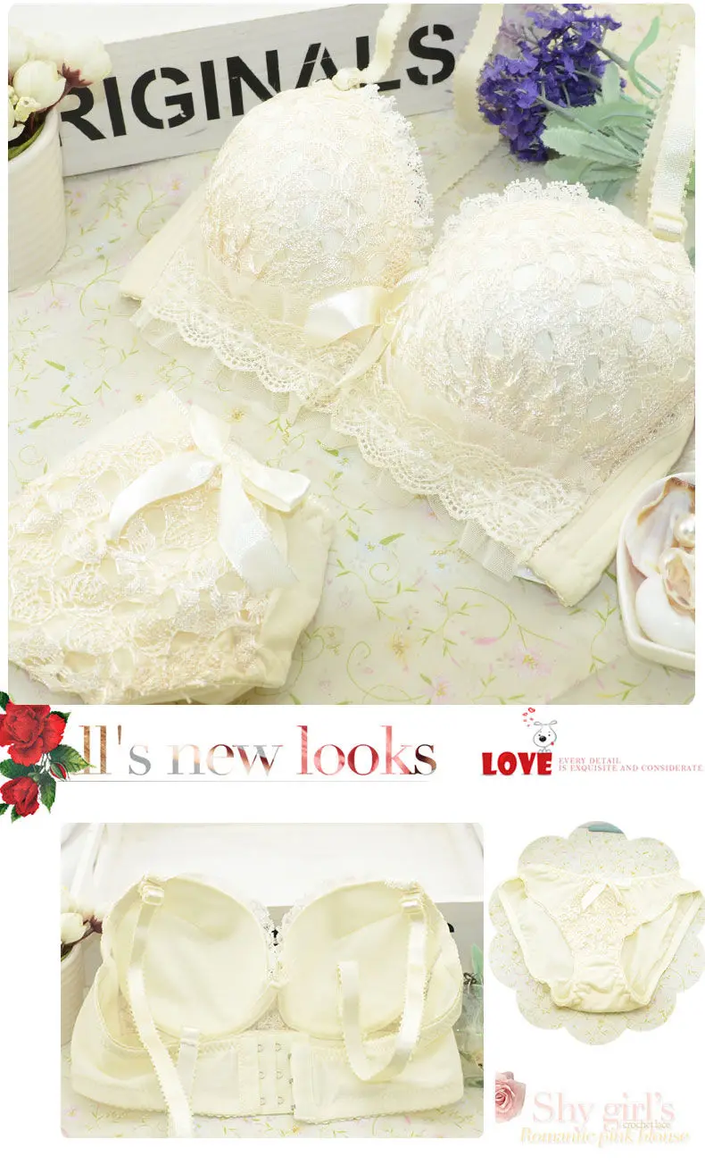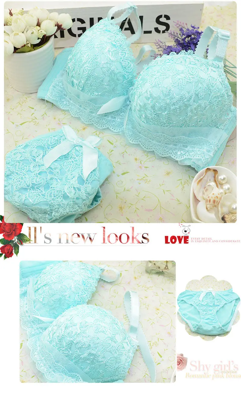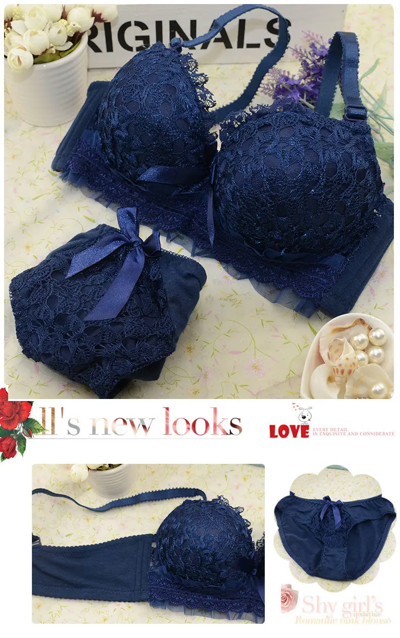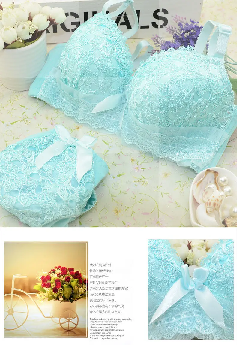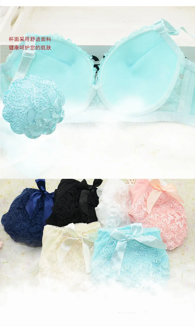 7 opinii dla Biustonosz Push Up dla kobiet zestaw koronkowy biustonosz bezszwowy bawełniana bielizna bez fiszbin słodka dziewczyna studenci bielizna z majtkami Sexy Lingeries