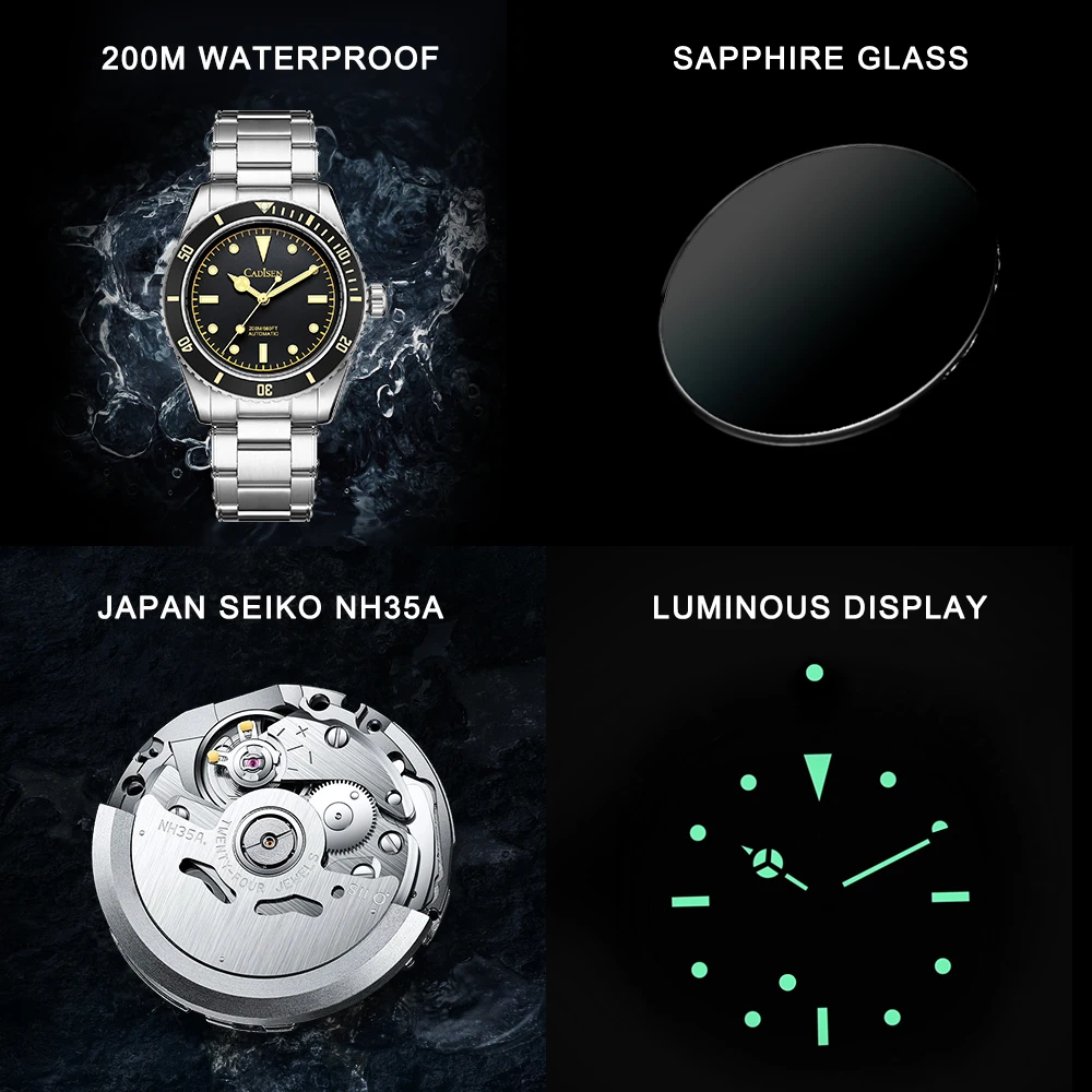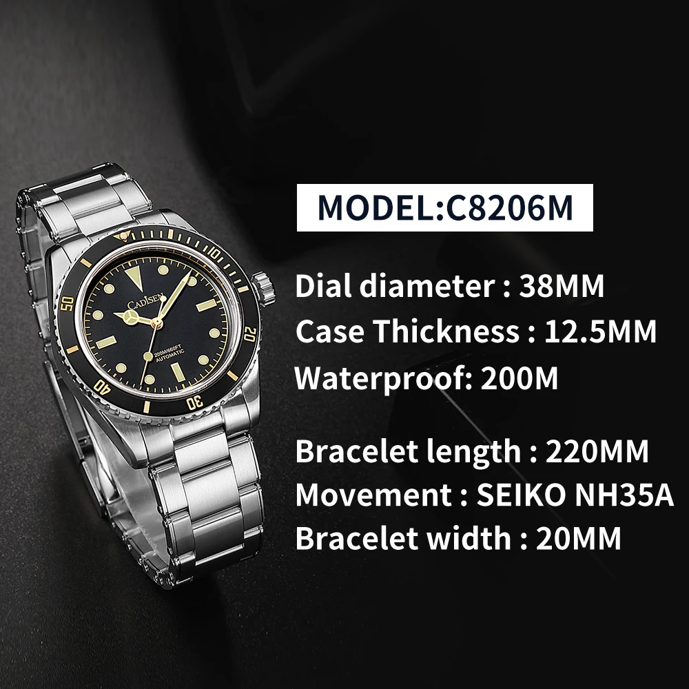 CADISEN luksusowy męski zegarek 38mm Diver Vintage automatyczny biznes zegarki NH35 mechaniczny szafir 20 Bar mężczyzna zegar Retro