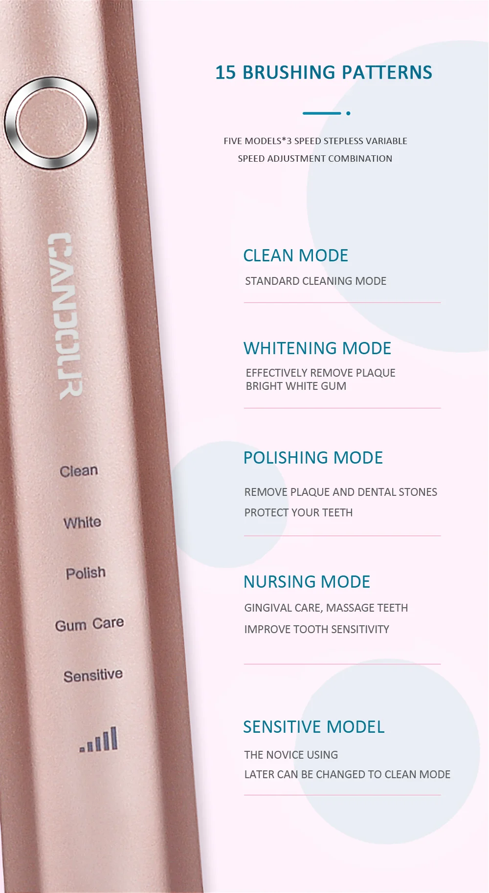 CANDOUR CD-5168 elektryczna soniczna szczoteczka do zębów funkcja produktu
