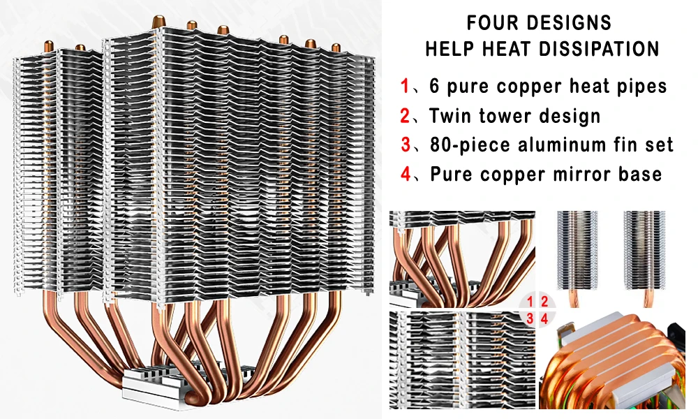 W normalnych warunkach, 6 cpu radiator rury miedziane może skutecznie chłodzenia cpu temperatury przez 10-15 stopni celsjusza.