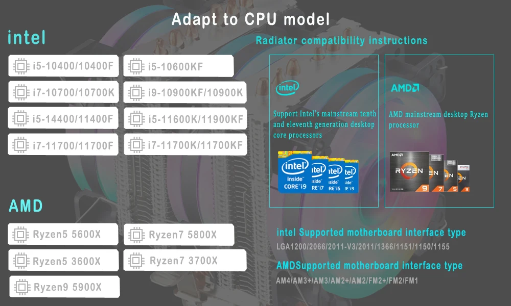 Dla chłodnica procesora LGA1200/2066/2011-V3/2011/1366/1151/1150/1155