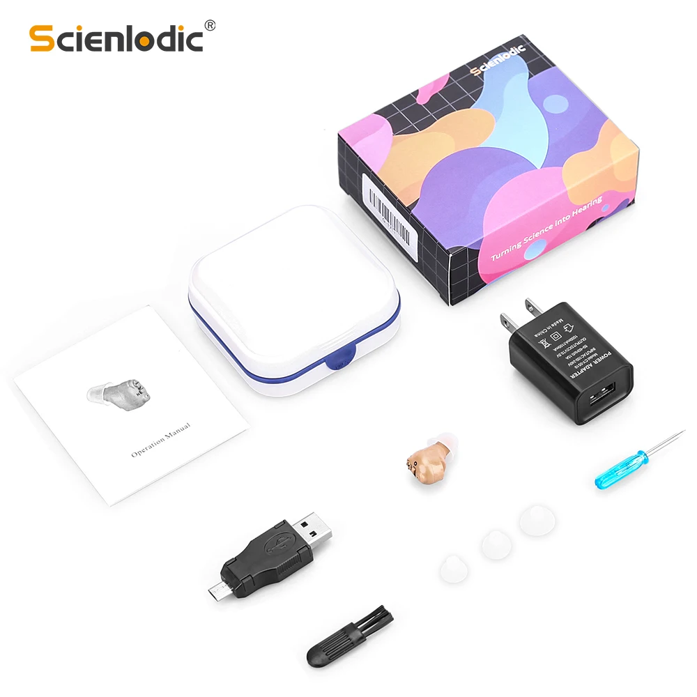 7. Prezent w pakiecie: damy pudełko na aparat słuchowy do przenoszenia. Każdy zestaw zawiera ładowarkę, wkładki douszne i szczotkę do czyszczenia itp. będą świetne prezenty dla przyjaciół lub rodziny.