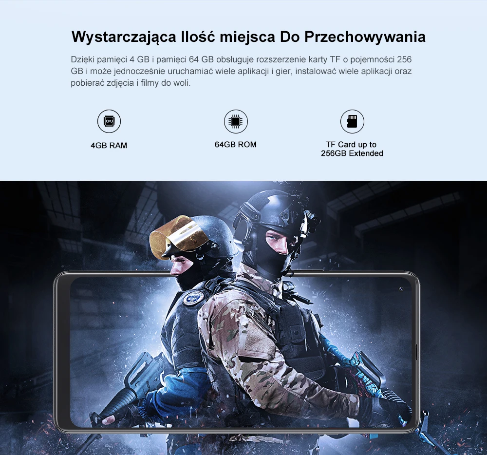 ROM:64GB TF Karta do rozszerzenia do 256 GB |