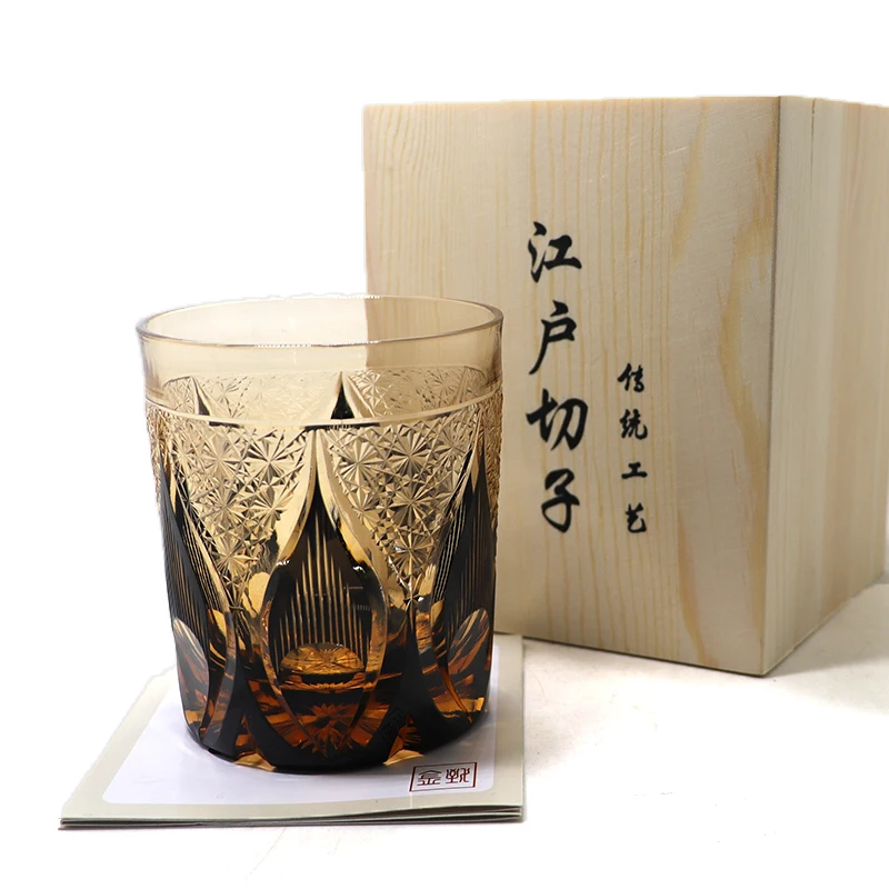 Człowiek dmuchane delikatne czeski kryształ szkło ręcznie cięte, aby jasne szkło japoński Edo Kiriko Style kubek wody pudełko opakowanie