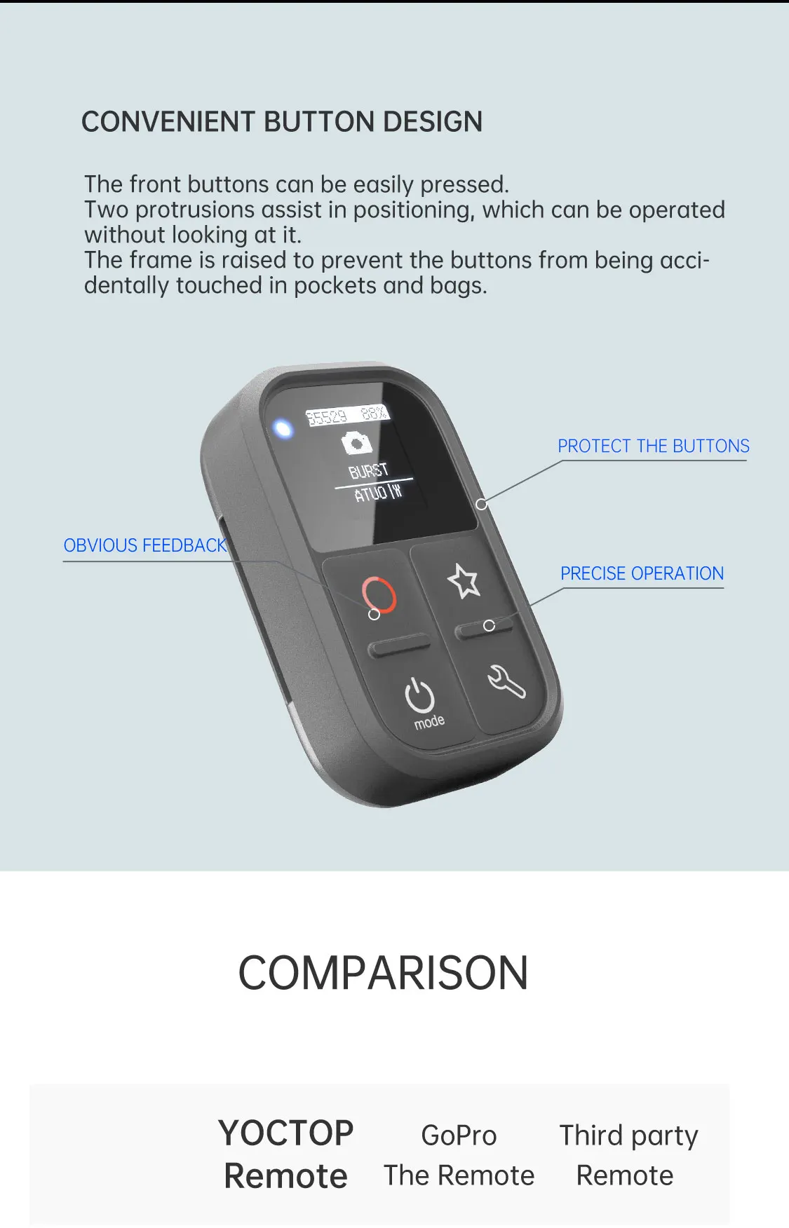 2. Funkcja szybkiego przechwytywania: jeden klawisz, aby obudzić aparat i rozpocząć nagrywanie. Inne zdalne sterowanie nie ma tej funkcji.