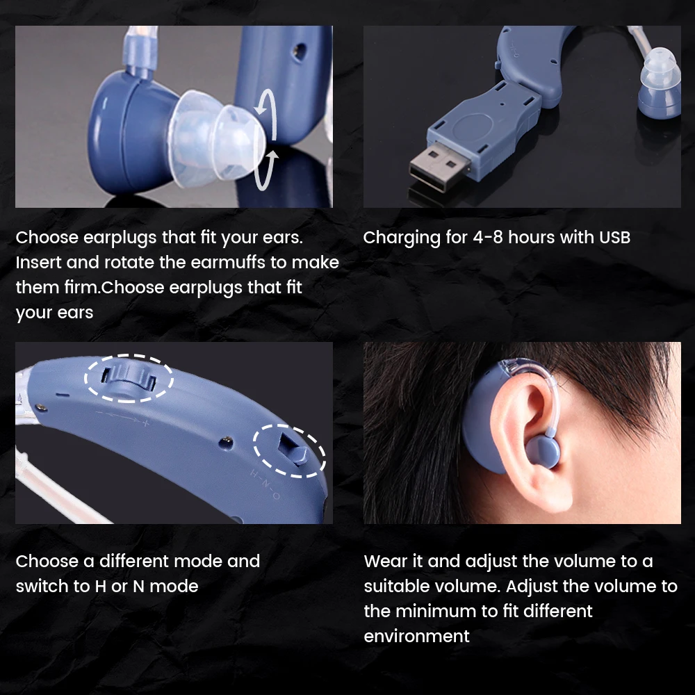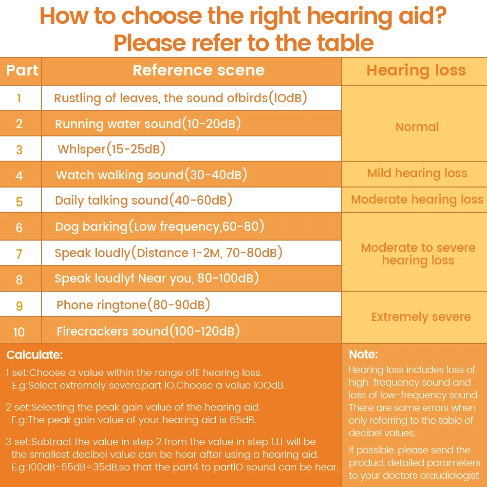 5. Użytkownicy, którzy nie słyszeli dźwięku przez długi czas, mogą powodować utrata słuchu z powodu długotrwałego niesłyszenia dźwięku, co powoduje, że aparat słuchowy nadal nie może usłyszeć dźwięku. Proszę wytrwać, nadal stymulować wzrost nerwu słuchowego, a usłyszysz po pewnym czasie. Jeśli nie masz pewności, czy twój aparat słuchowy działa prawidłowo, możesz wypróbować produkt u osoby z normalnym słuchem.