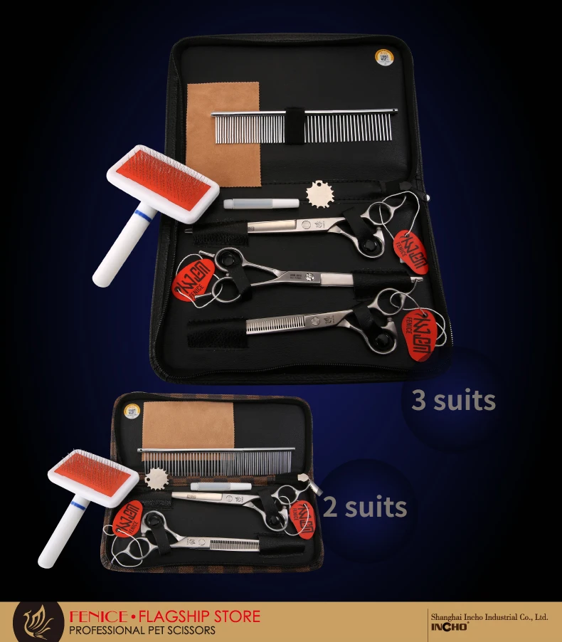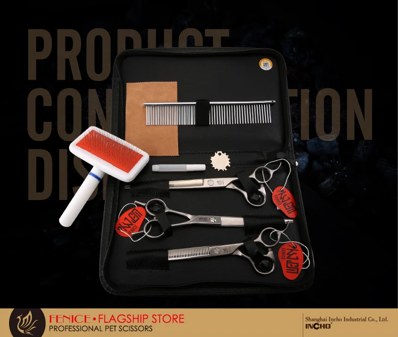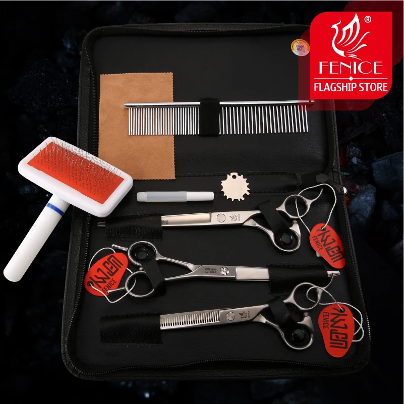 Fenice zestaw nożyczek dla psów proste i przerzedzenie i zakrzywione nożyczki do pielęgnacji zwierząt domowych zestawy Bichon Teddy Bomei Dog grooming nożyce zestaw narzędzi