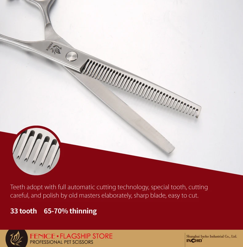 Fenice japonia 440C ze stali nierdzewnej 6.75/7 cal pet nożyczki do pielęgnacji psów nożyce do cieniowania dla psów przerzedzenie oceń 70%
