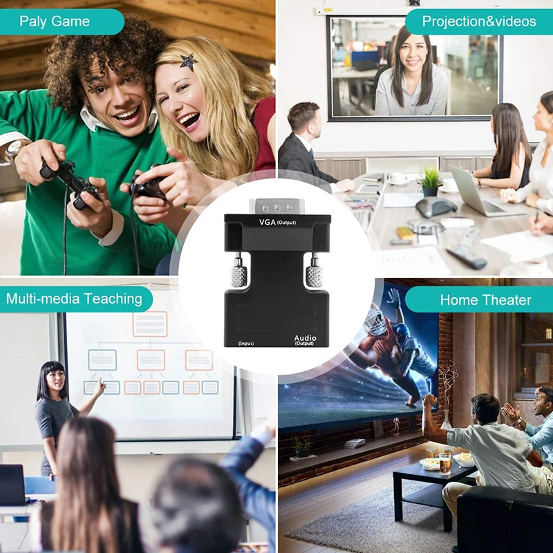 Ten zgodny z HDMI konwerter VGA, wyjściowy sygnał VGA może być wysyłany na wyświetlacz CRT / LED, a projektor, wprowadź sygnał zgodny z HDMI, można podłączyć do PS3, XBOX360, blu-ray DVD, górne pudełka HD itp., wyjście VGA można podłączyć do domowego wyświetlacza CRT / LED, VGA-IN telewizora HD TV, VGA-IN projektora itp. mogą być wygodne dla znajomych telewizji HD HD TV, aby rozwiązać moment zmartwień.