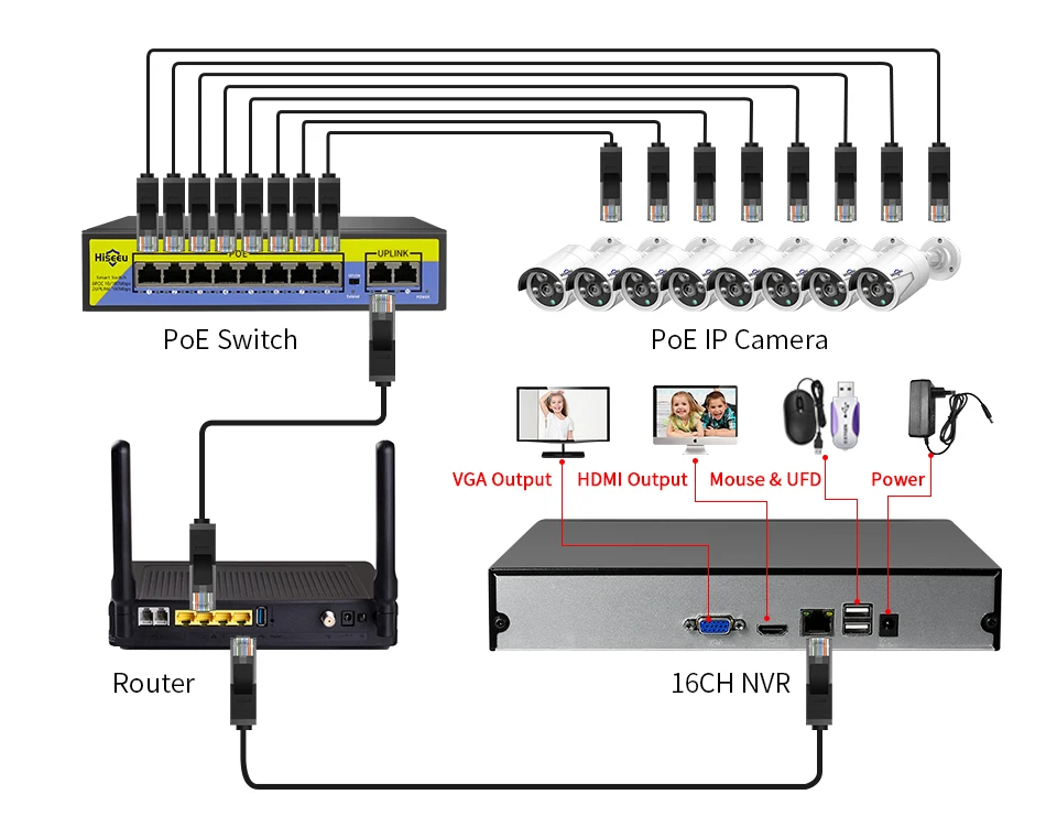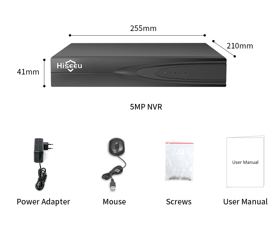 Ten NVR może współpracować z kamerami Hiseeu 5MP i 1536P poe, kliknij poniższe zdjęcia, aby kupić