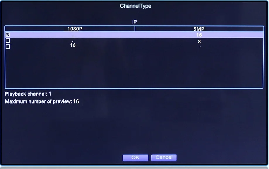 5MP / 4MP / 3MP / 1080P / 960P / 720P |