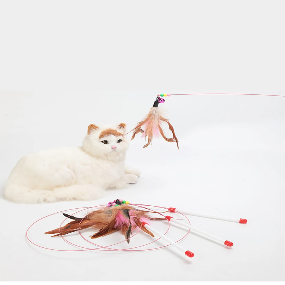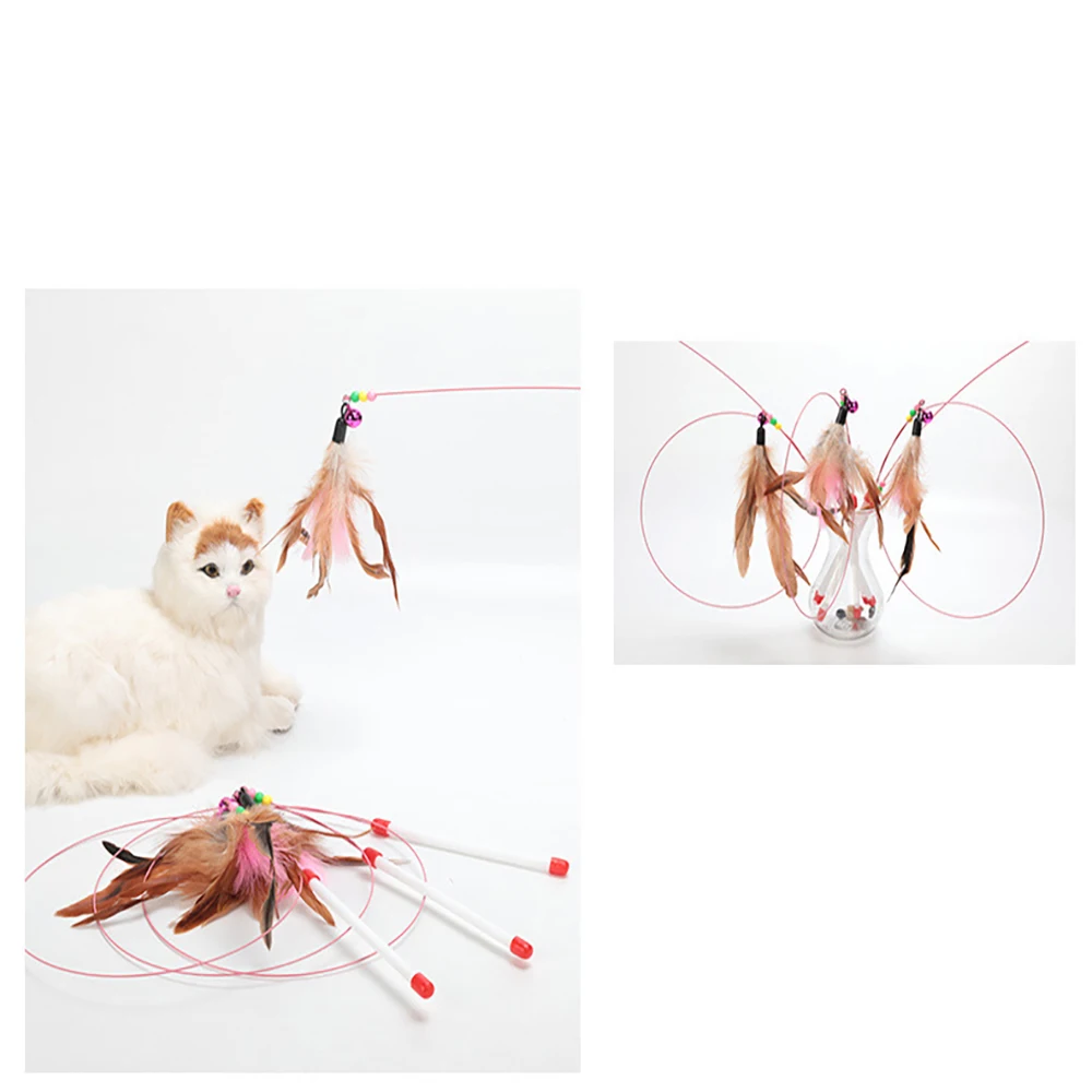 Interaktywna zabawka dla kota ze stali nierdzewnej zabawny piórko ptak z dzwonkiem molowy kij dla kotka gra Teaser różdżki zabawki artykuły dla kotów