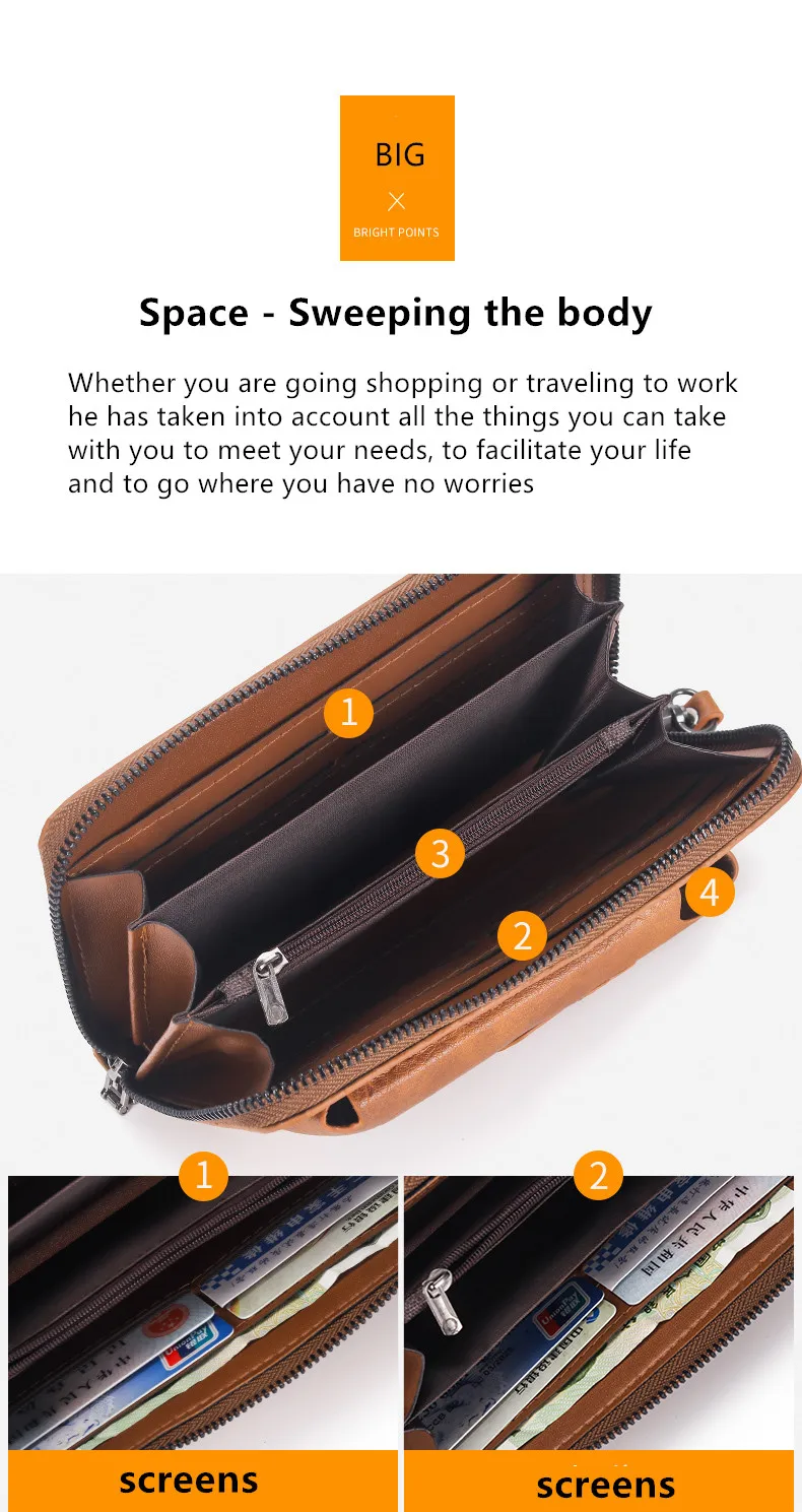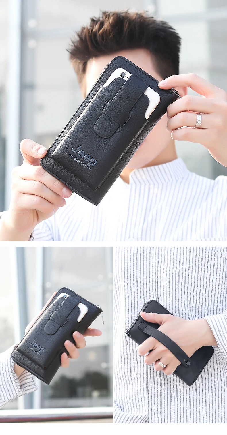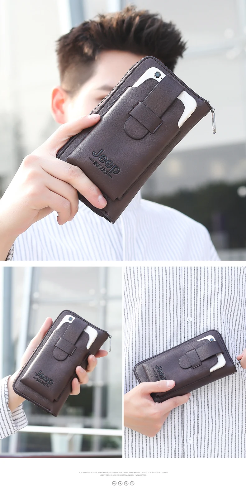 JEEP BULUO znanej marki portfel kopertówka marki torebka na telefon podwójny zamek błyskawiczny luksusowy portfel skórzana kopertówka o dużej pojemności