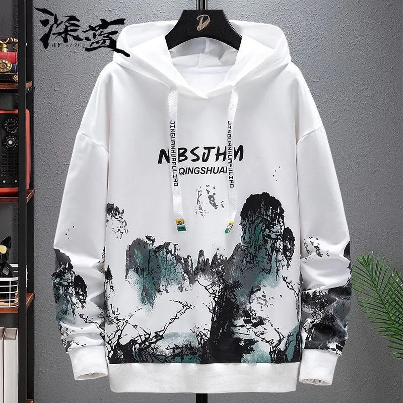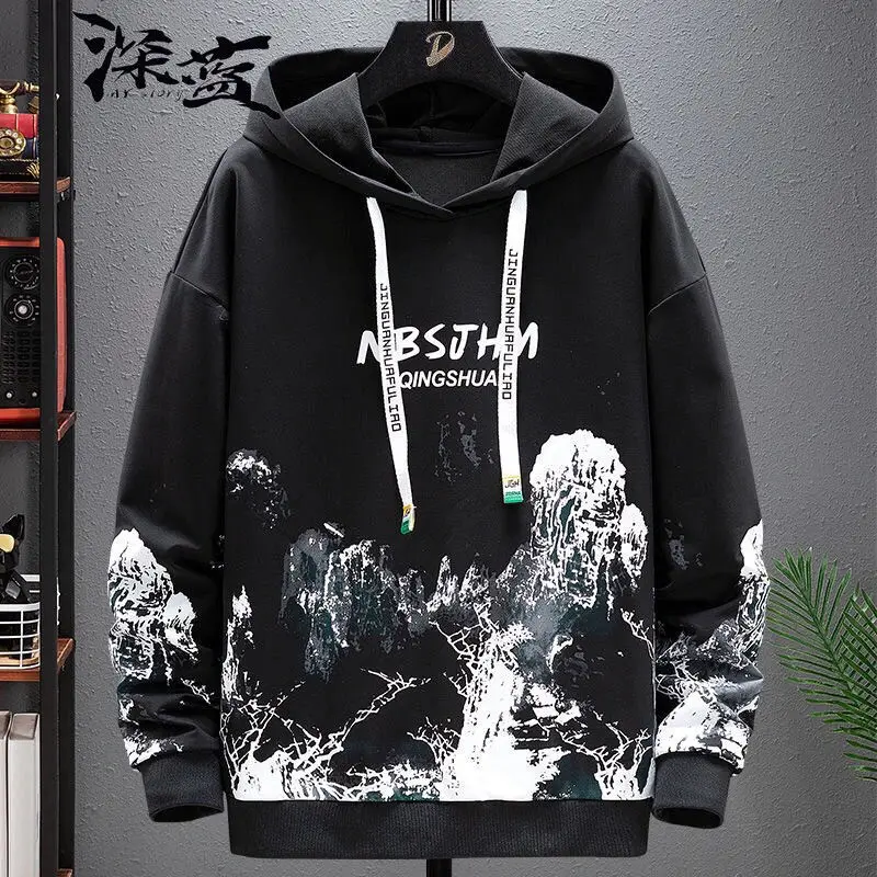 Jesienno-zimowy sweter polarowy garnitur męski koreański wersja trend luźna casualowa kurtka chłopięca harajuku męska odzież graficzna bluza z kapturem