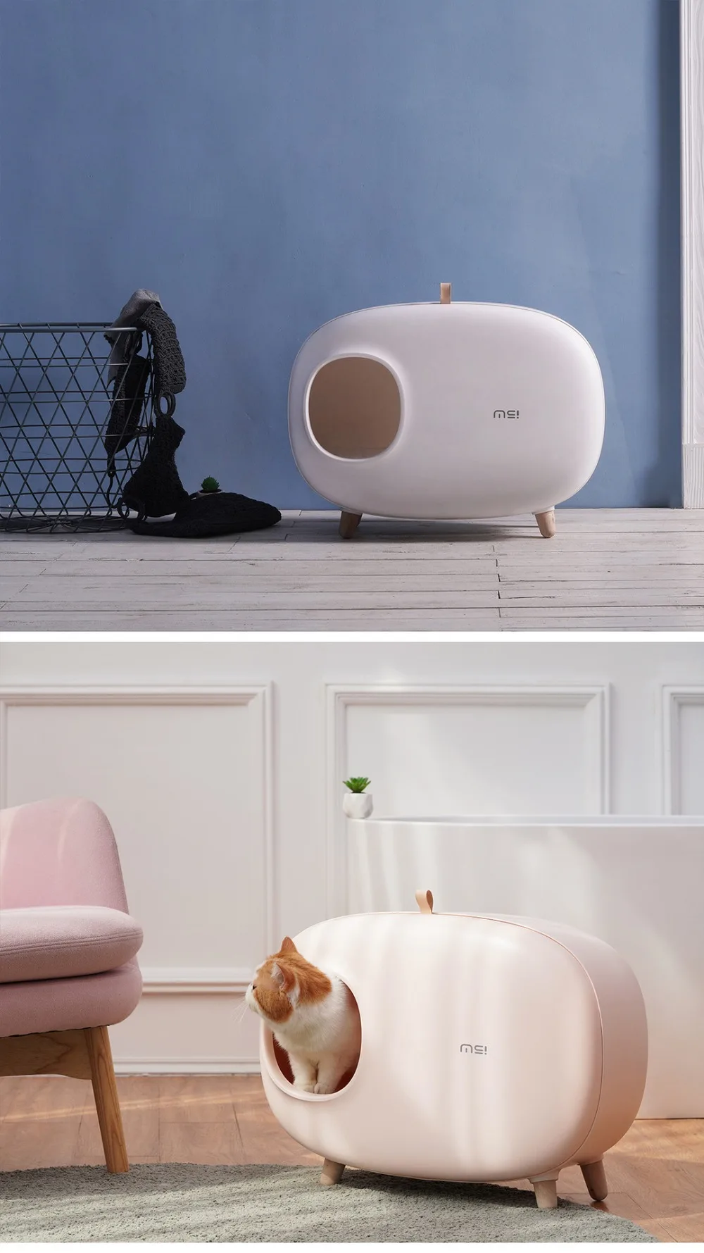 1. Kreatywny nowy top-sekcja dziura skok w kuweta, półzamknięte projektu kapsuły, zapobiega żwirek dla kotów rozpryskiwania, dezodorant, odłączalny i łatwy do czyszczenia.