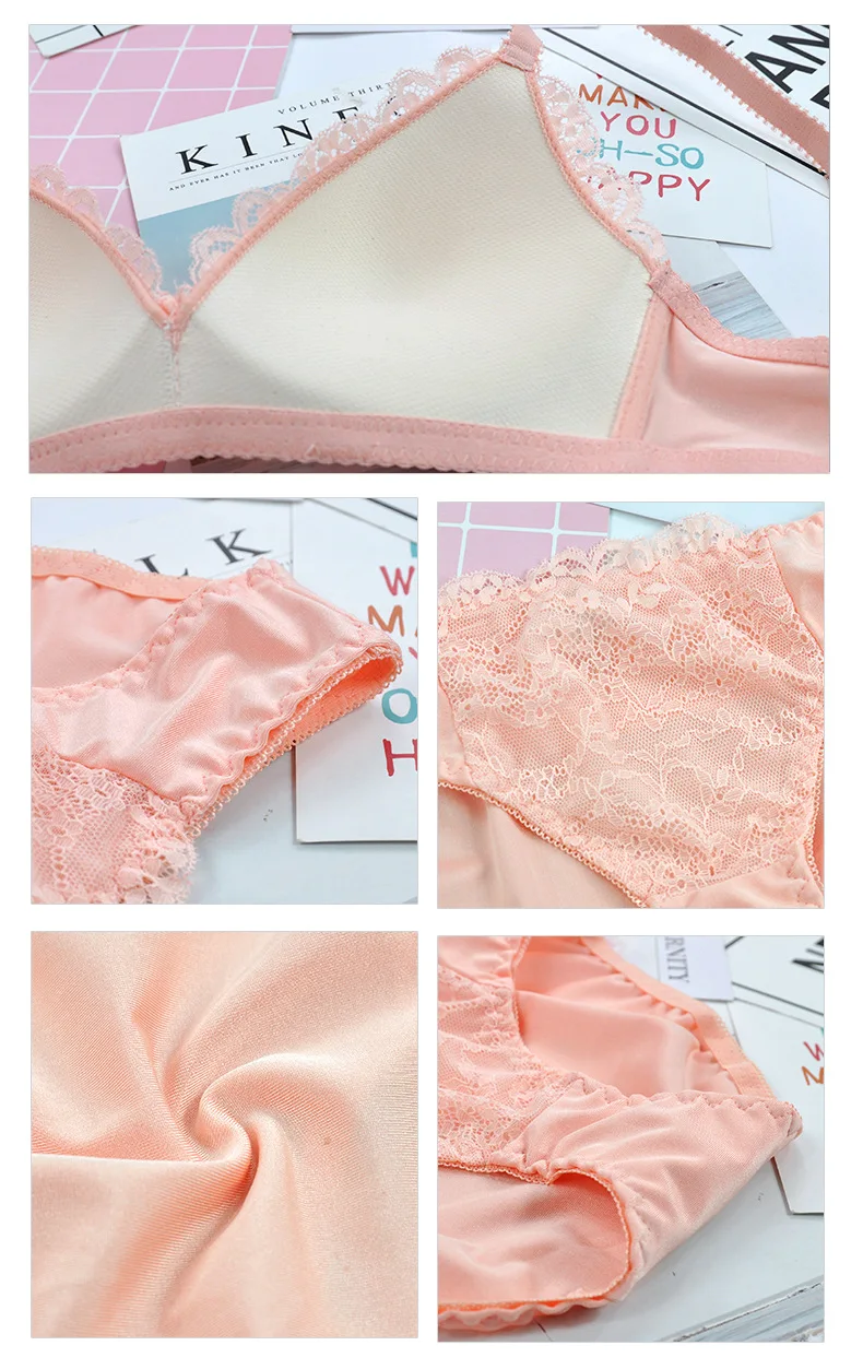 Nowy kobiety 4 kolor bielizna francuski drut-bezpłatny Ultra-cienkie biustonosze typy braletka seksowna koronkowa trójkąt puchar komplet biustonosz push-up bawełniany biustonosz i majtki