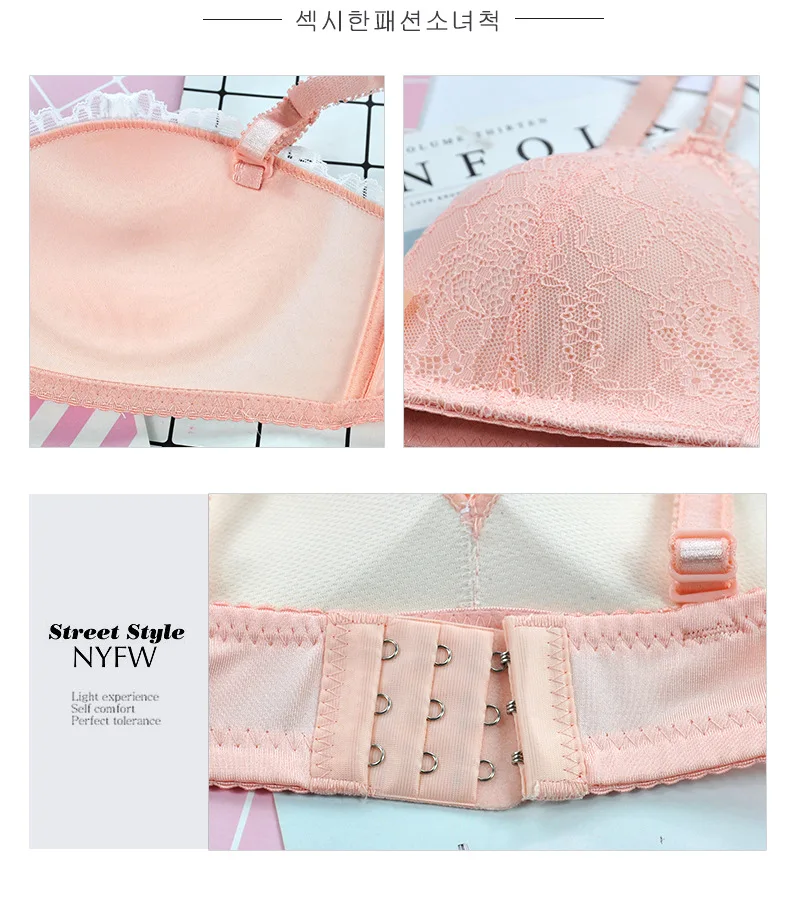Nowy komplet biustonosz Push-Up kobiet 5 kolor bielizna koreański bez drutu Ultra cienkie biustonosze typy braletka seksowna koronkowa trójkąt puchar bawełniany biustonosz i majtki