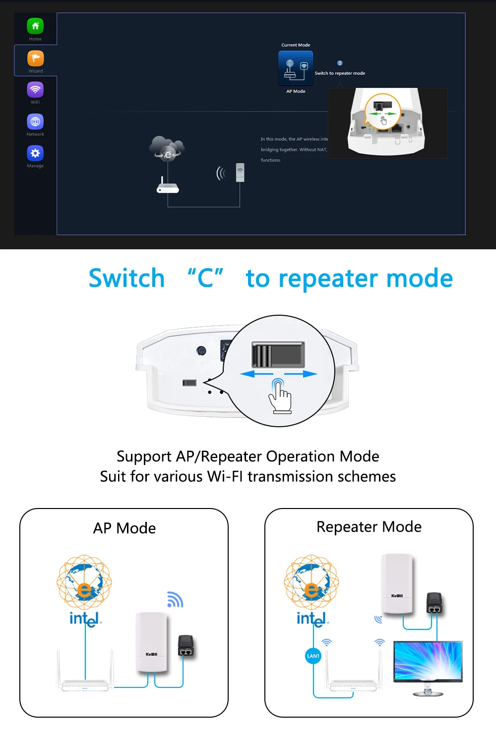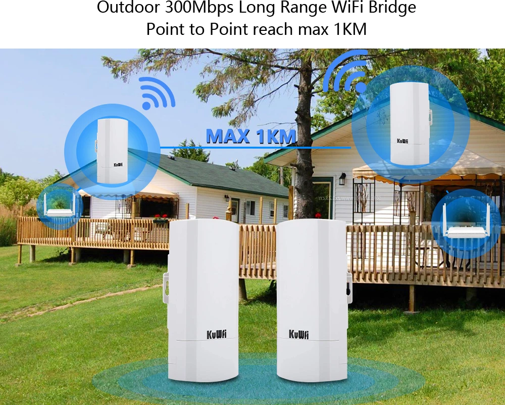 KuWFi zewnętrzny Router Wifi 300 mb/s Router bezprzewodowy Repeater/mostek wi-fi daleki zasięg zasięg Wifi 2.4Ghz punkt do punktu 1KM zewnętrzny CPE AP most 24V POE LAN i WAN