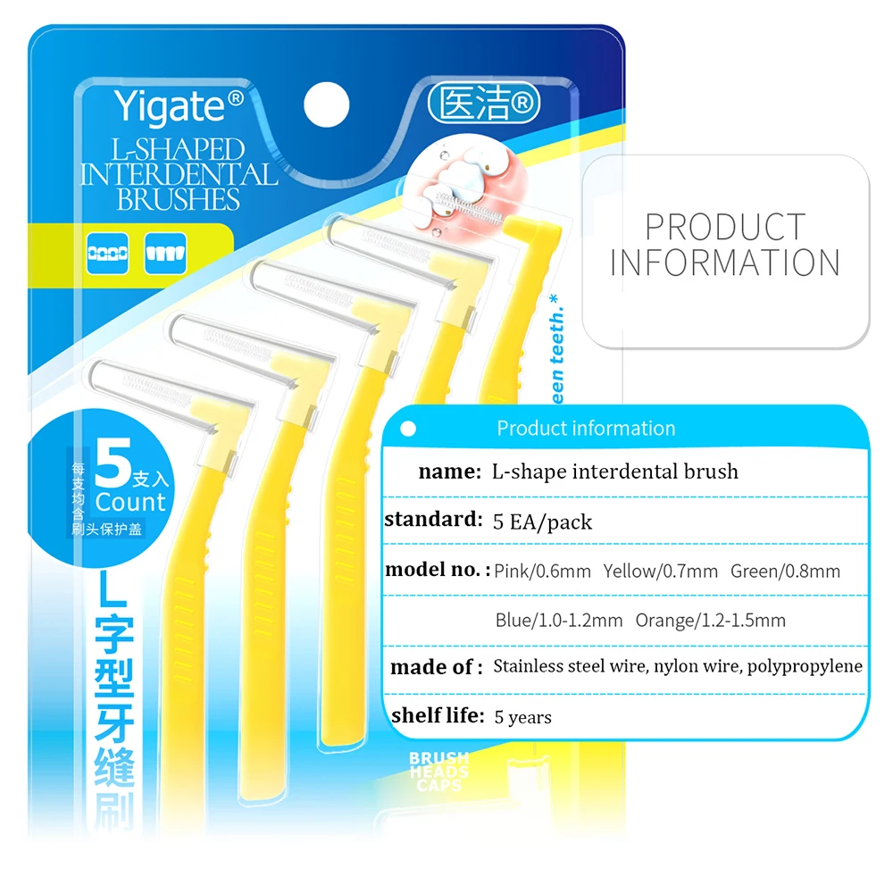 Dla średnich szczelin między zębami: 0.6mm ~ 1.5mm kąt międzyproksymalna szczotka jest przeznaczony dla średnich szczelin, które przechodzą między wnętrzem zębów i dziąseł, aby zmniejszyć płytkę nazębną.