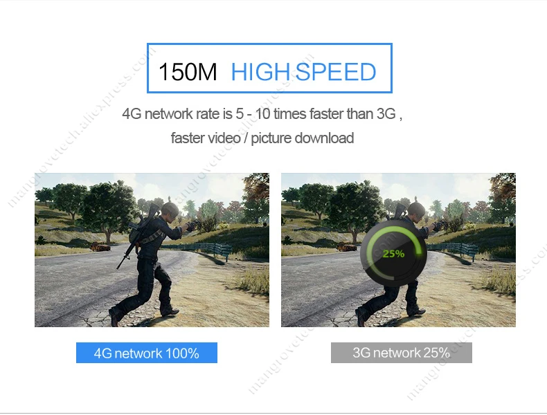 Maksymalna pojemność chipsetu 4G routera wynosi 150M , a teoretyczna stacja bazowa 4G z maksymalną prędkością wynosi 150M. Jednak stacja bazowa 4G zapewnia obsługę wielu użytkowników 4G w tym samym czasie, zamiast dawać pełną przepustowość 150M jednemu użytkownikowi i siłę sygnału 4G, ograniczenie karty SIM i środowisko wpłynęłyby również na szybkość sieci.