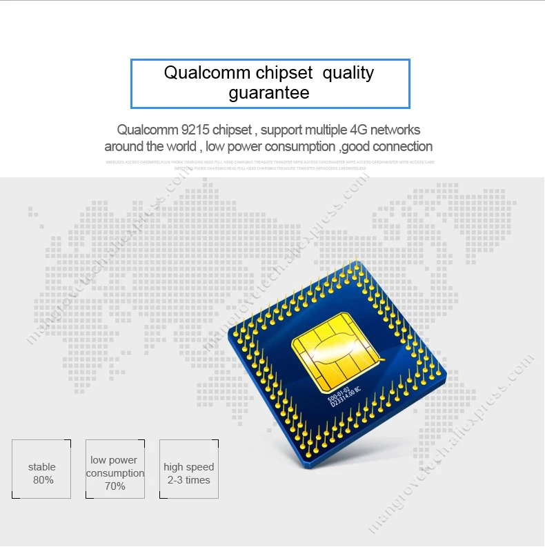 Wszystkie nasze routery 4G LTE wykorzystują amerykańskie chipsety QUALCOMM 4G, zamiast tańszych chipsetów z tajwanu, najlepszy chipset gwarantuje najlepszą wydajność dla naszych urządzeń.