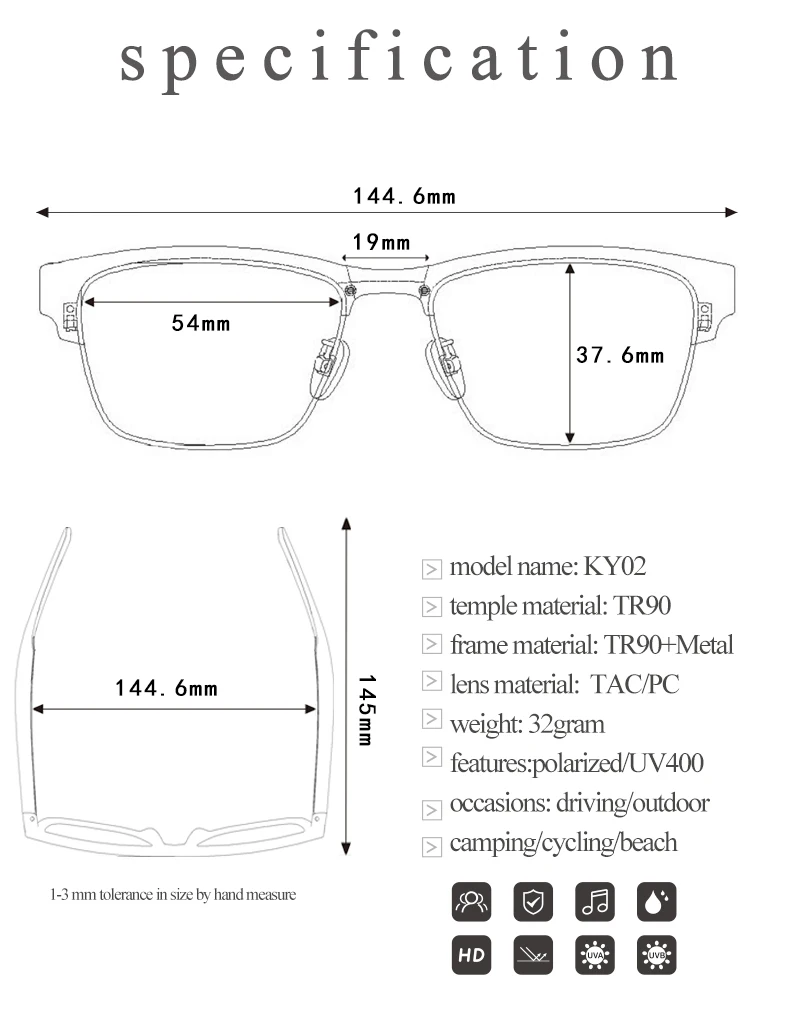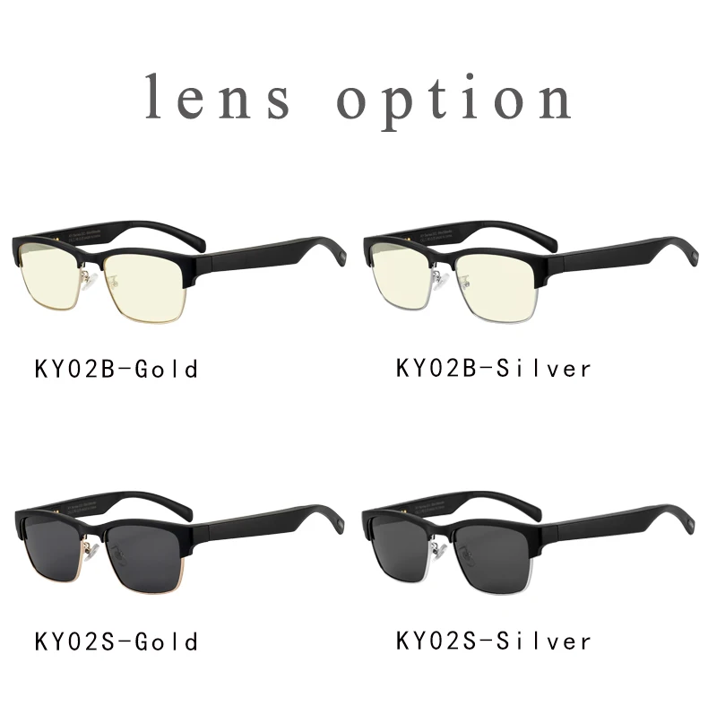 Jakość KY02 bluetooth okulary nie są bardzo dobre, ale nie jest, złoty rama podkreśla poczucie luksusu, I anti-niebieskie światło soczewki pomóc mojej działa bardzo dobrze. Logistyka jest bardzo szybko, a okulary są otrzymane w około 2 tygodni.