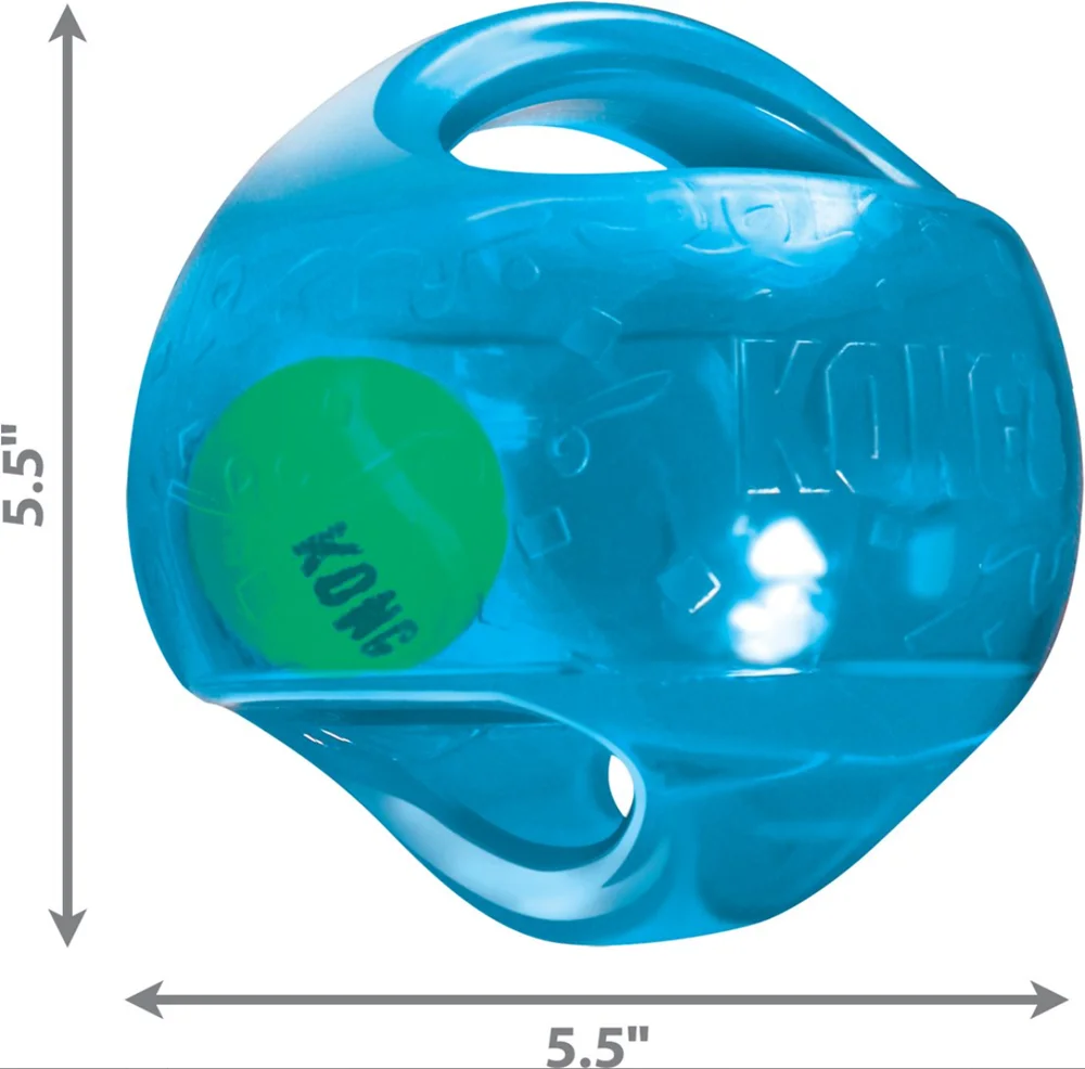 KONG Jumbler to zabawkowa piłka typu “dwa w jednym”, która zapewnia podwójną interaktywną zabawę w jednej łapie-jakąś zabawkę. Wewnętrzna piłka tenisowa i głośny pisk zachęcają do gry, a uchwyty ułatwiają odbiór i drżenie zarówno dla ciebie, jak i twojego partnera do zabawy. Z kombinacji dźwięków i tak wiele sposobów, aby grać KONG Jumbler zapewni ekscytujące, aktywne grać sesji dla ciebie i twojego psa.