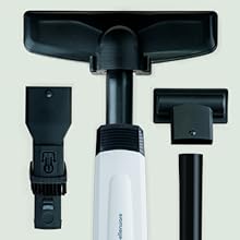 Poręczny nie jest prosty odkurzacz ręczny! Posiada wysuwaną rurkę i but, dzięki czemu można przekształcić go w odkurzacz miotły i odkurzać wszelkiego rodzaju podłogi i dywany. Do dyspozycji gości jest również szczotka 2 w 1 oraz specjalna szczotka do tapicerki, sof i łóżek.