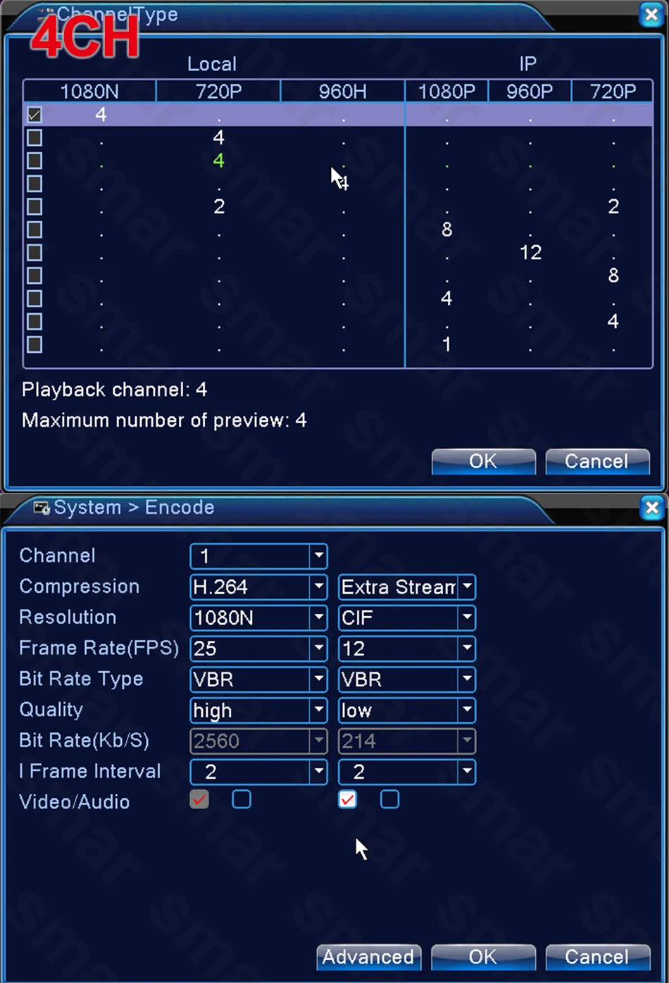 Tryb TVI: obsługa 4 * kamery TVI