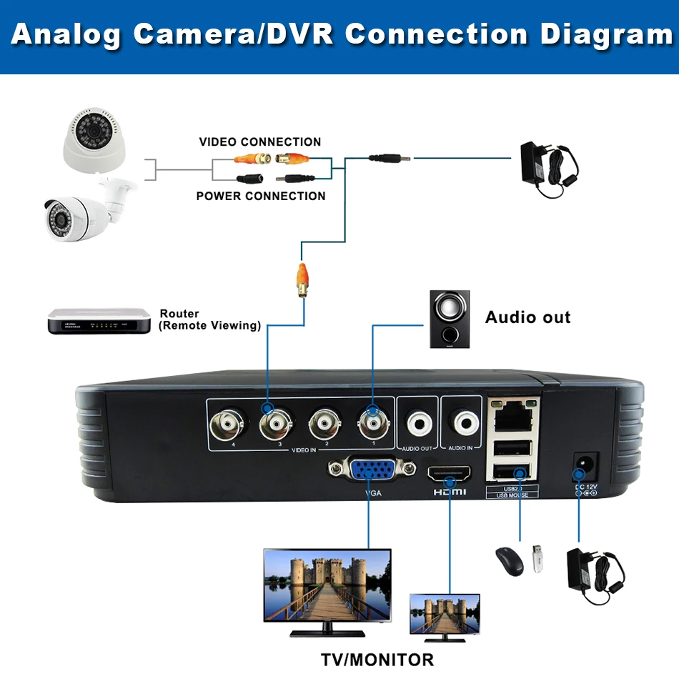 1. Nasz 4/8 kanał DVR jest funkcja 5 w 1, wsparcie 720P/960P/1080P kamera AHD, 960H/D1 kamera analogowa, 720P/960P/1080P kamera IP, możemy polecić wysokiej jakości, dobrej cenie kamera ochrony dla ciebie.