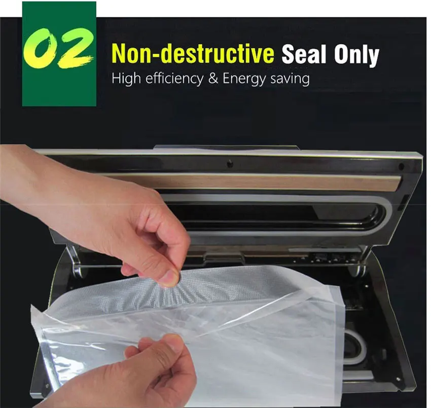 Trzy rodzaje siły roboczej (luźne/standardowe/ciasne) możemy kontrolować siłę próżni sami, inna sytuacja dla różnych przedmiotów, jest to idealna funkcja, lepsza niż wiele innych. Dla suchej żywności: sytuacja 1. Możemy nacisnąć przycisk Dry i standardowy przycisk, aby pracować w suchej i standardowej sytuacji; Sytuacja 2. Możemy nacisnąć przycisk Dry i przycisk Tight, aby pracować w suchej i ciasnej sytuacji. Dla wilgotnej żywności: sytuacja 1. Możemy nacisnąć wilgotny przycisk i luźny przycisk, aby pracować w wilgotnej i luźnej sytuacji; Sytuacja 2. Możemy nacisnąć przycisk wilgotny i standardowy przycisk, aby pracować w wilgotnej i standardowej sytuacji.