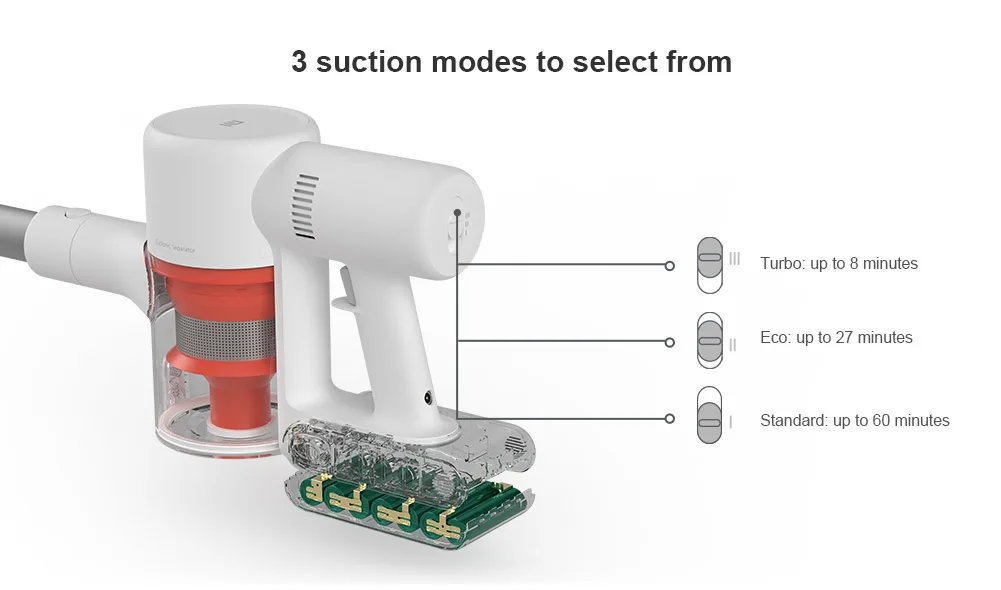 • Trzy tryby czyszczenia eco (60 minut), standard (27 minut) i wysoka moc (8 minut).
