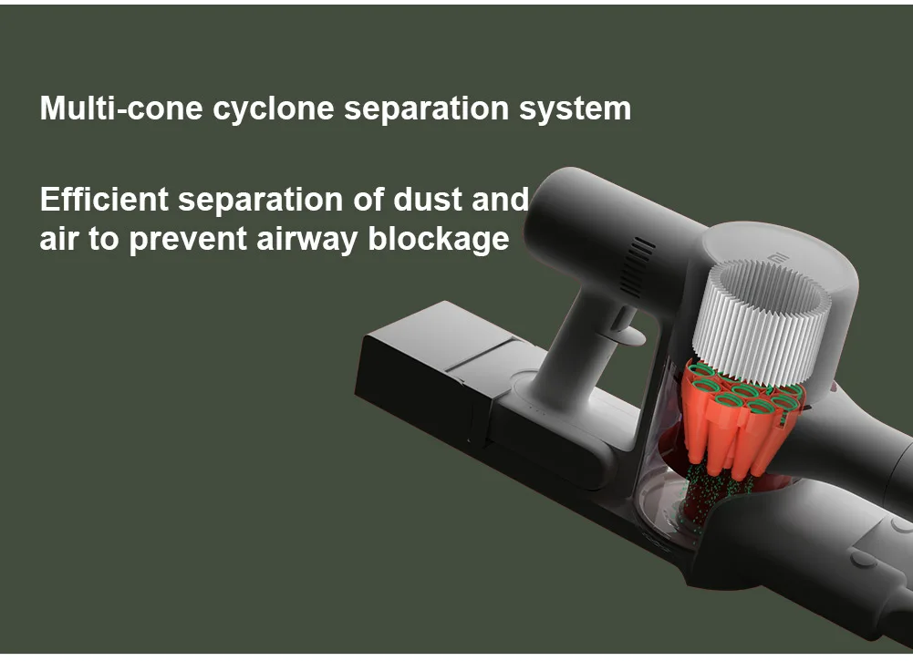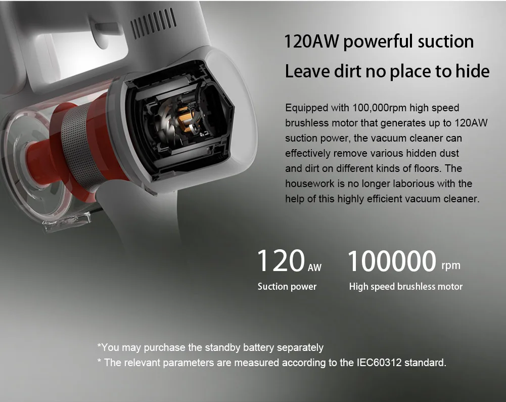 Wyposażony w bezszczotkowy silnik o prędkości 100,000 obr./min, który generuje do 120 mocy ssania, odkurzacz może skutecznie usuwać różne ukryte zabrudzenia na różnych rodzajach podłóg. Prace domowe nie są już pracochłonne dzięki temu wysoce wydajny odkurzacz.