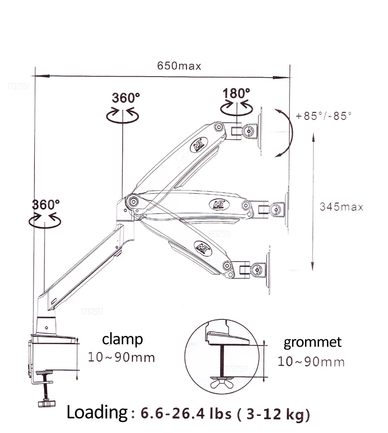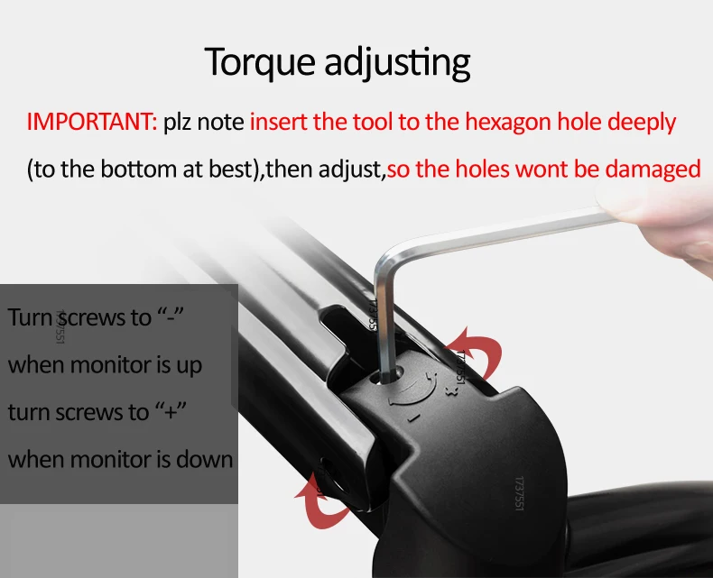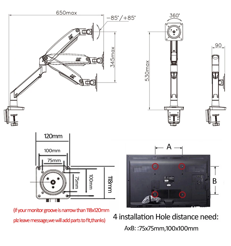 Zakres obciążenia: 6.6 -26.4 funtów (3 – 12kg)(Plz upewnij się, że twój ekran znajduje się w tym zakresie, lub sprężyna gazowa uchwytu nie mogła działać)