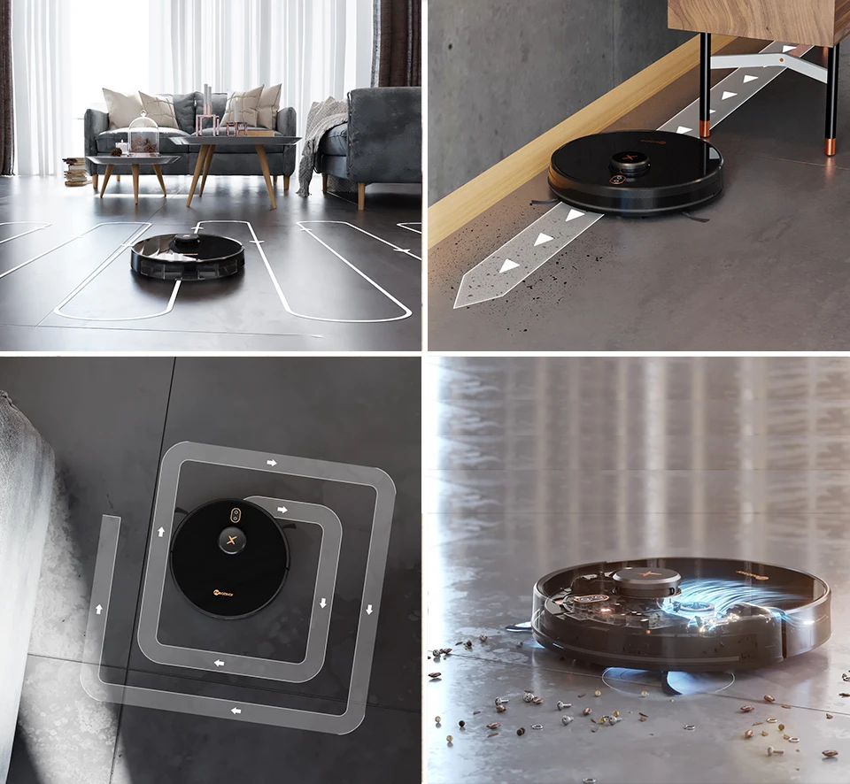Ulepszony spiralny system ssania pozwala robotowi osiągnąć maksymalne ssanie 6000 Pa. A x600pro automatycznie dostosowuje się do czyszczenia dywanów, płytek, podłóg drewnianych i laminowanych podczas poruszania się po domu.