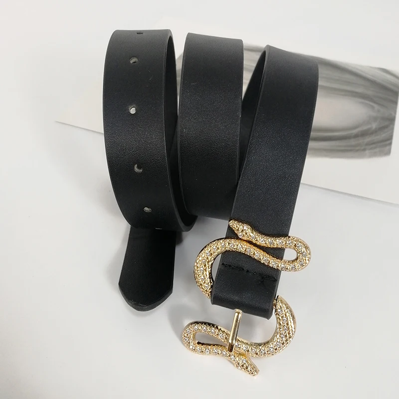 Pasy Designer dla kobiet wysokiej jakości luksusowa marka shinny rhinestone wąż klamra pu skórzany pas panie dżinsy cinturon mujer
