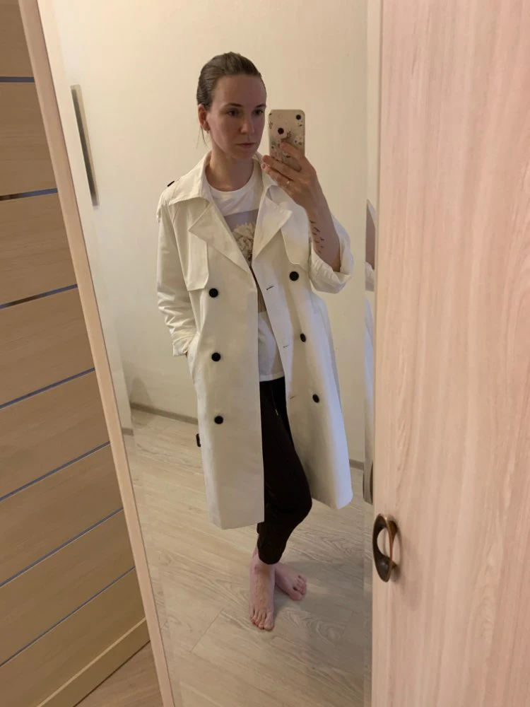 Ładny płaszcz przeciwdeszczowy! Kolor jest piękny, znajduje się doskonale i staje w sytuacji sam na sam wysokość 160 i rozmiar 46 doskonale zbliżył się do. Na wyższy wzrost gospodarczy konieczne jest, aby wziąć ten, który jest bardziej długość, W przeciwnym razie ten będzie aż do kolan