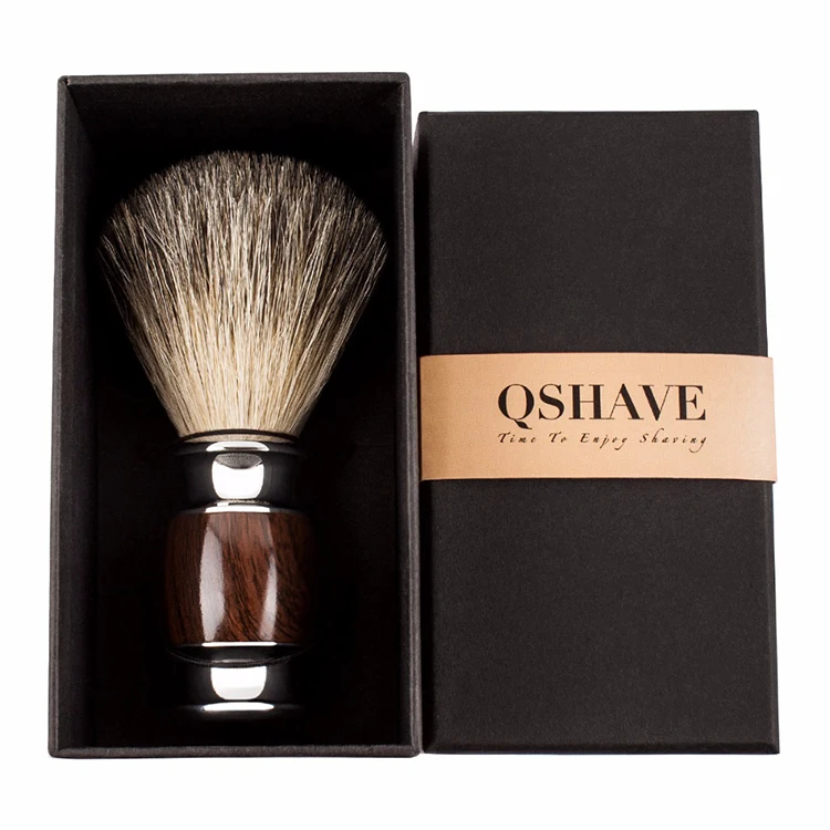 Qshave Man Pure włosia borsuka pędzel do golenia drewno 100% do maszynki do golenia prosta klasyczna maszynka do golenia 11.5cm x 5.6cm ziarno drewna