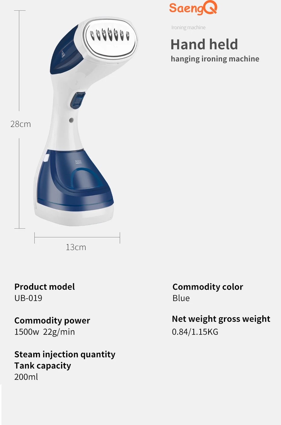 SaengQ żelazko parowe parownica do odzieży podręczna tkanina 1500W podróż pionowa 280ml Mini przenośna strona główna podróżowanie na ubrania prasowanie