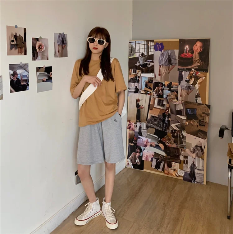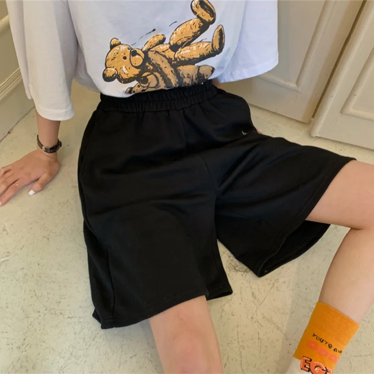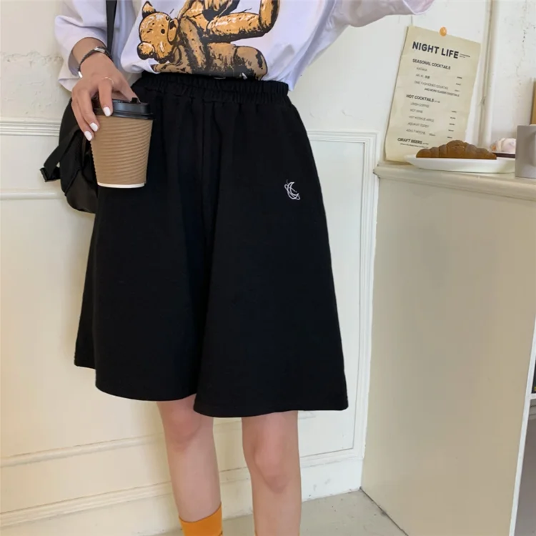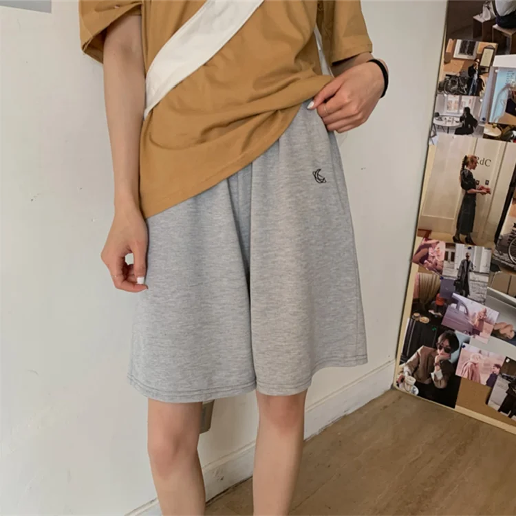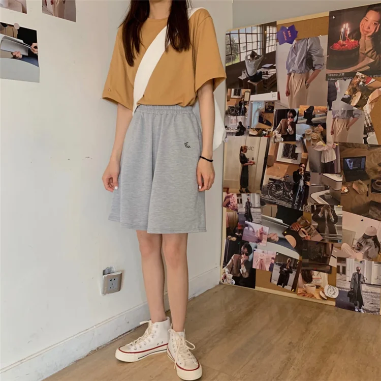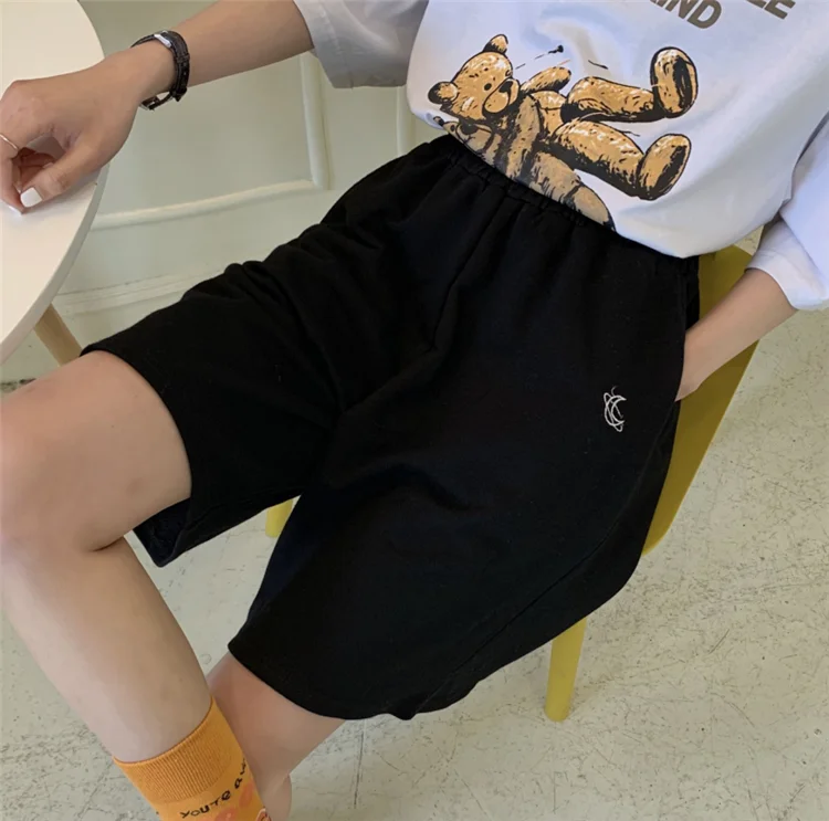 11 opinii dla Spodenki damskie letnie luźne 3XL solidne hafty BF szerokie nogawki do kolan Harajuku Casual proste Ins modne wszystkie mecze studenci Chic