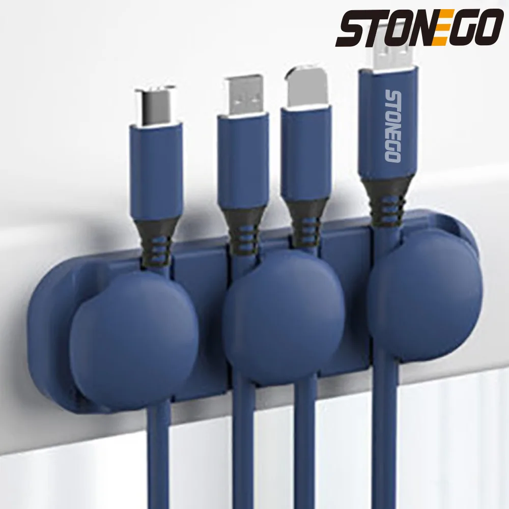 Stonego silikonowe USB Organizer do kabli oplot na kable pulpit Tidy Management kabel z zaciskami uchwyt do myszy przewód słuchawek organizatorzy