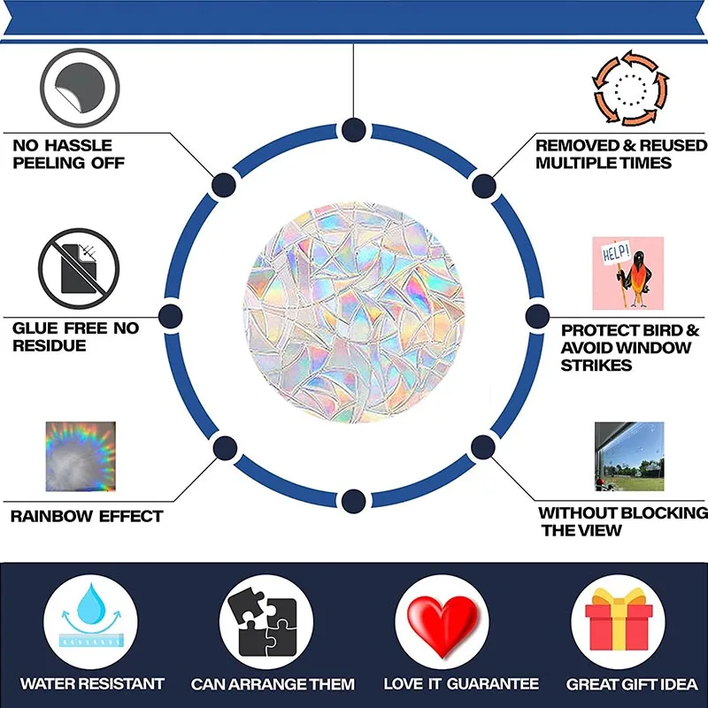 【Znakomity wygląd, modne ornamenty】: przyjmując unikalne nieregularne wzory, ta folia okienna 3D wzbogaca twoje życie w domu, ponieważ tworzy magiczny efekt wizualny tęczy po wystawieniu na działanie promieni słonecznych po instalacji, dobry zamiennik kosztownych zasłon lub żaluzji.