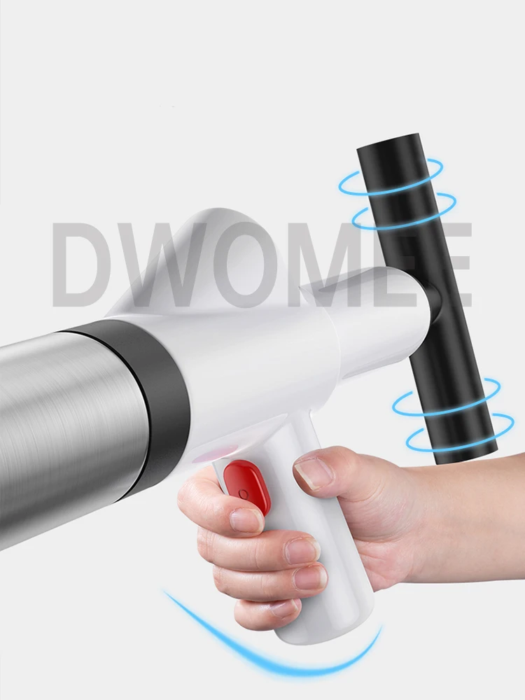 Potężny ręczny powietrzny udrażniacz blaster wykorzystuje bezwładność silnika do popchnięcia turbiny, a następnie sprężone powietrze zostanie wepchnięte do cylindra, tak więc moc sprężonego powietrza może oczyścić najtwardsze chodaki w drenach w ciągu zaledwie kilku sekund.