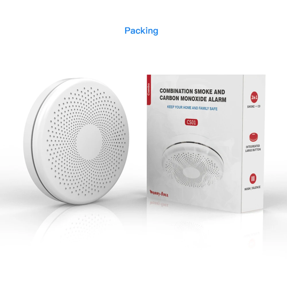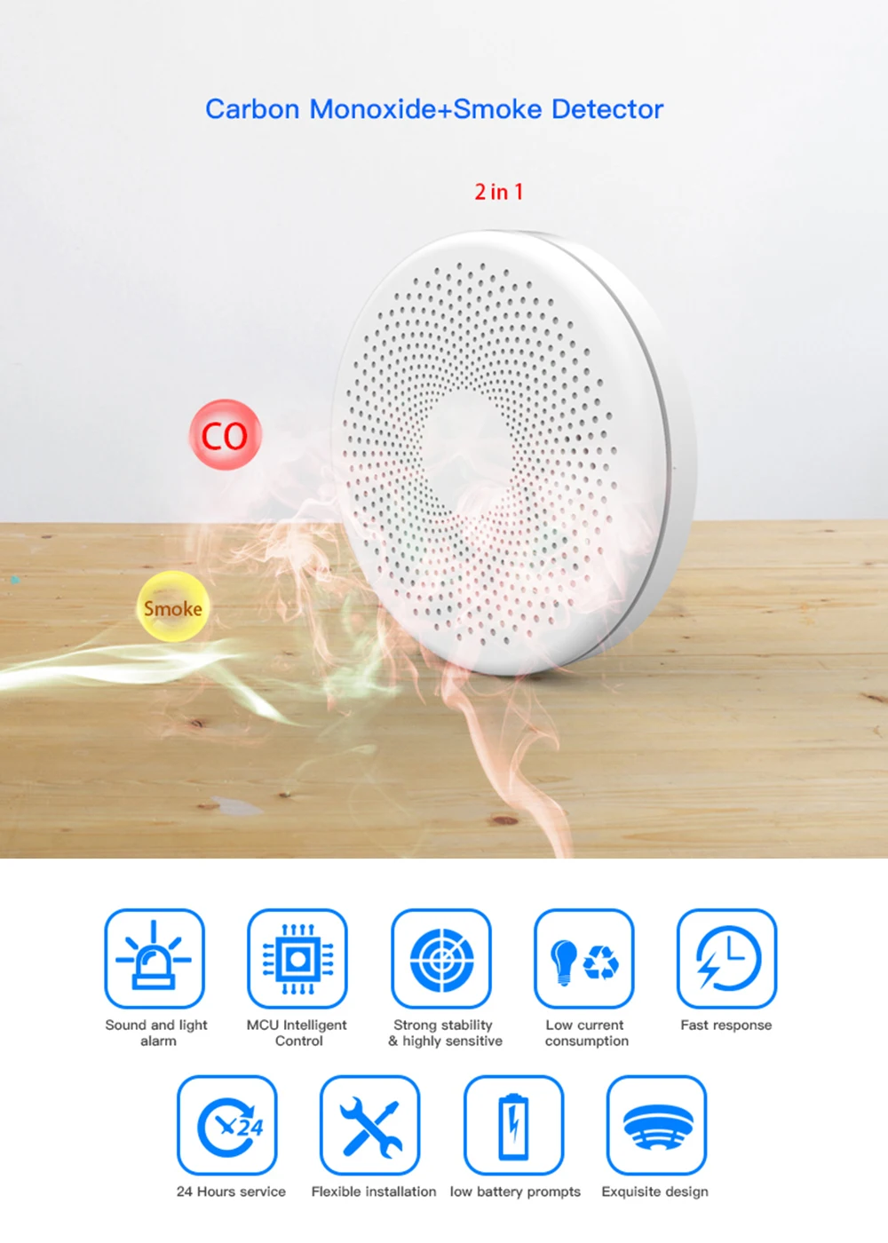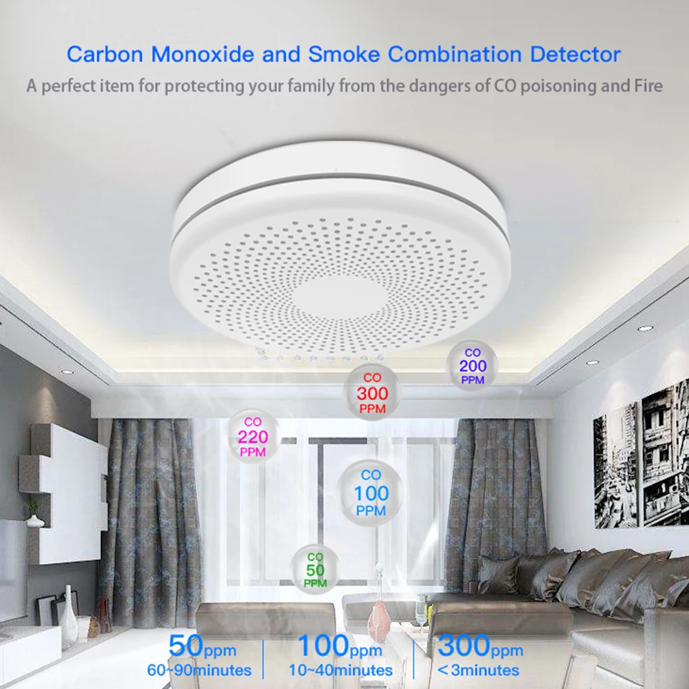 2-w-1 Tuya 85DB dźwięk alarmu WiFi tlenek węgla detektor dymu