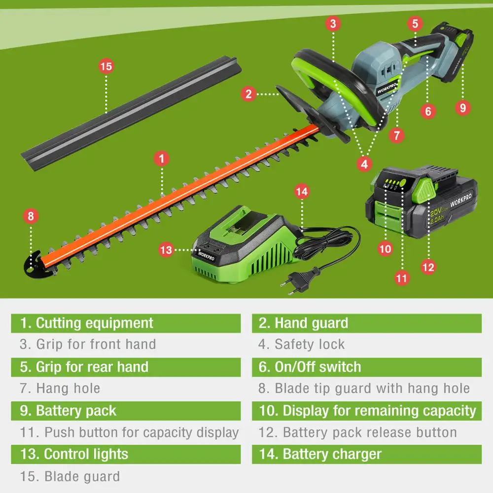 WORKPRO 20V akumulatorowa elektryczna przycinarka do gospodarstwa domowego narzędzia Quick Charge akumulator nożyce do żywopłotu do ogrodu z ostrzem
